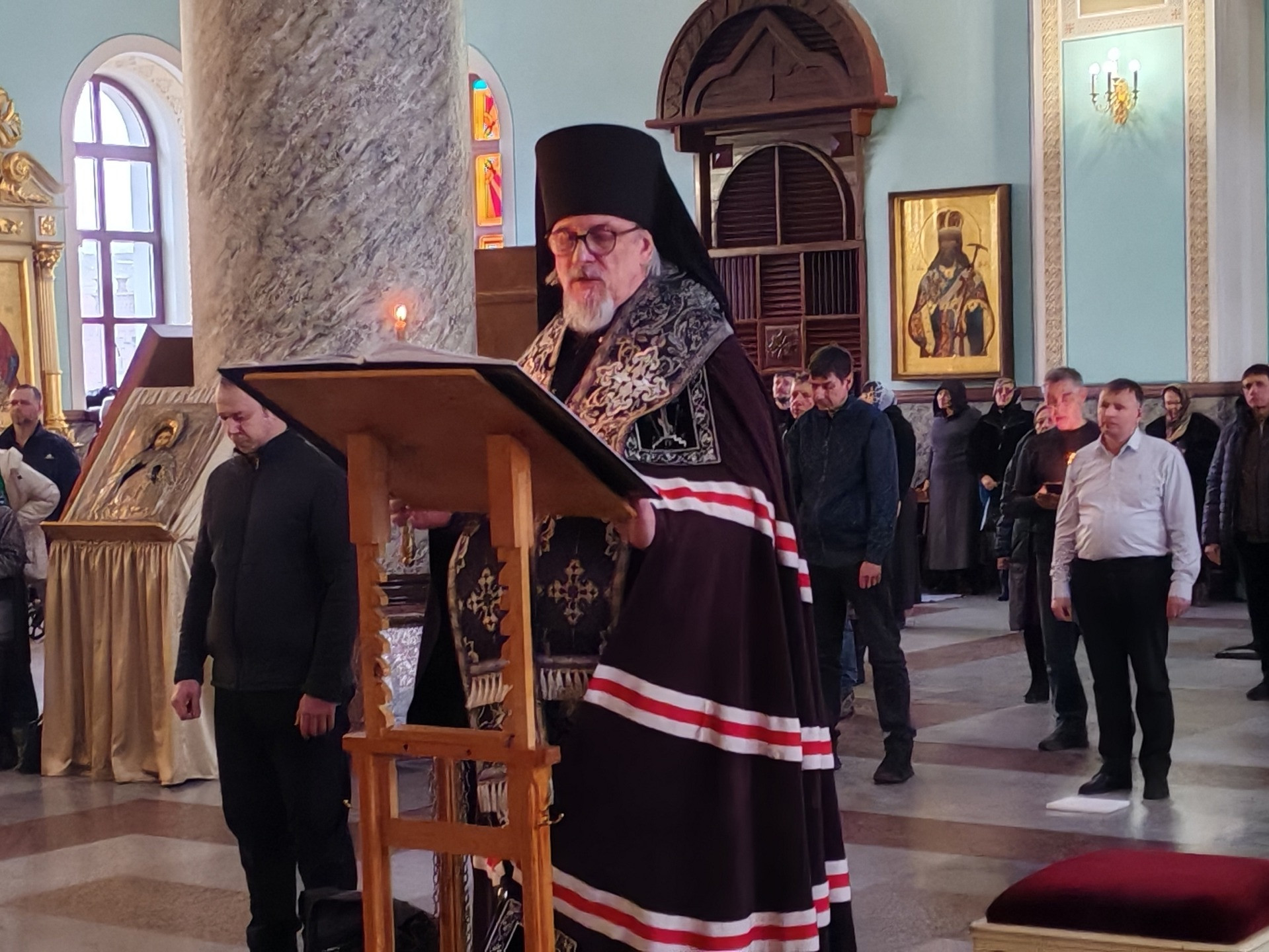 25 марта 2026 года, 5-й седмицы Великого поста, митрополит Читинский и Петровск-Забайкальский Димитрий совершил Литургию Преждеосвященных Даров в кафедральном соборе Казанской иконы Божией Матери города Читы. -