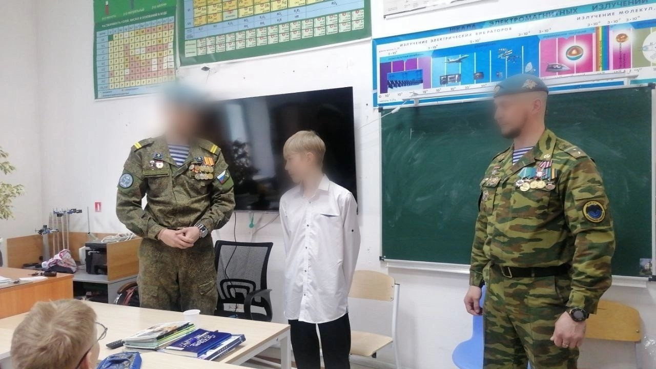 Особенным моментом стало вручение подарка ученику - автору письма, которое нашли в зоне проведения специальной военной операции. Это письмо стало символом связи между фронтом и тылом. Боец, к которому попало письмо, был рад встретиться с автором и вручить ему подарки – головной убор десантника и тактическую сумку