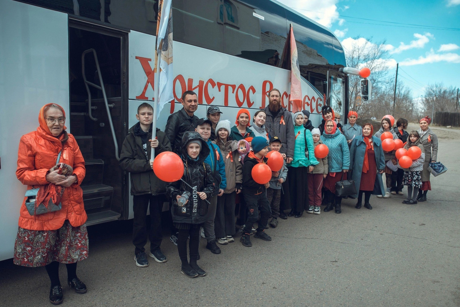 Большой автобус, украшенный буквами с пасхальным восклицанием: «Христос Воскресе!» и красными шарами, проехал по запланированному городскому маршруту и разносил радостную весть о Воскресении Христовом!