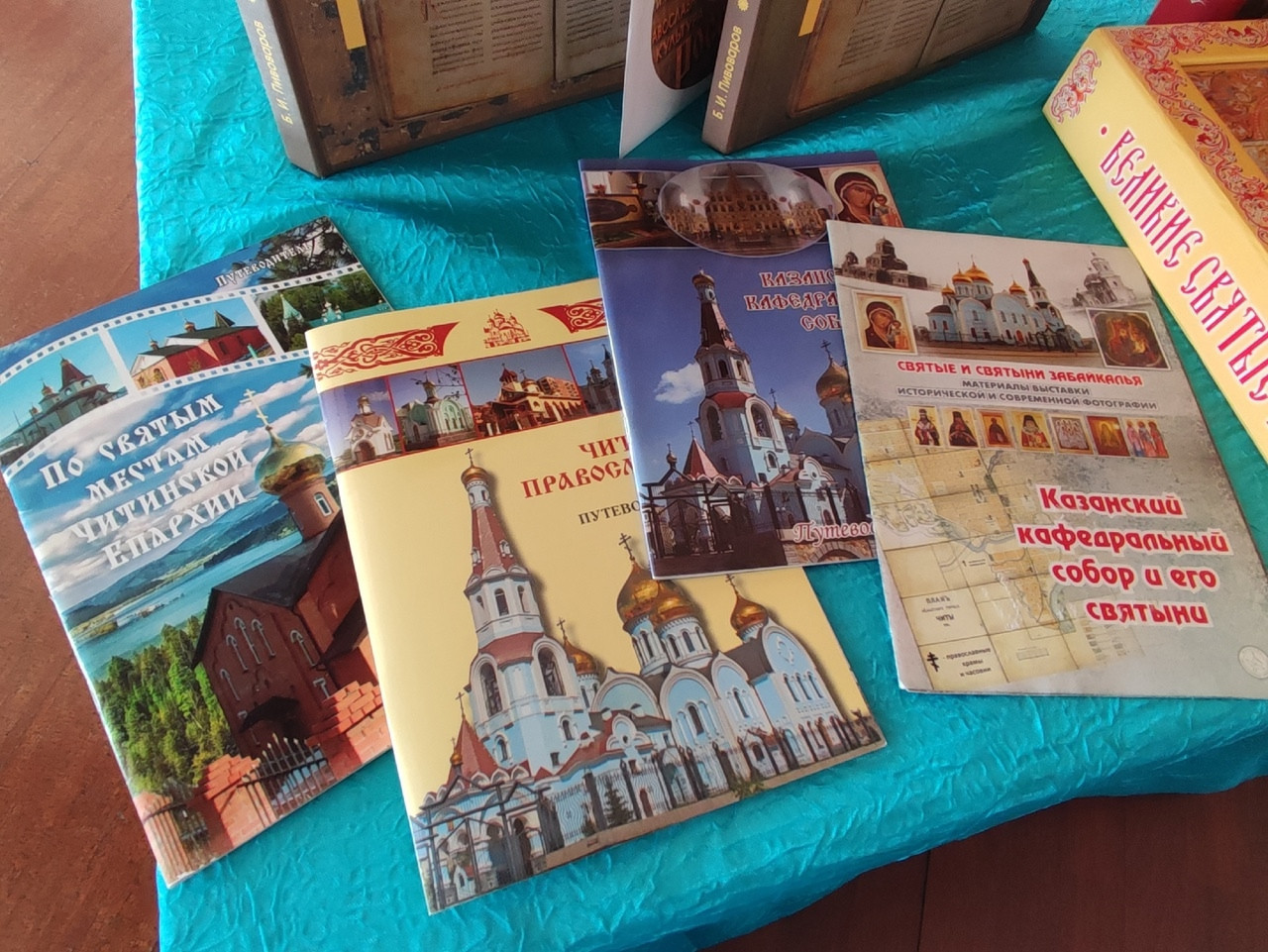 Во Дворце культуры и спорта развернулась книжная выставка, организованная соборным храмом Покрова Пресвятой Богородицы под названием «Забайкалье под Покровом Богородицы».