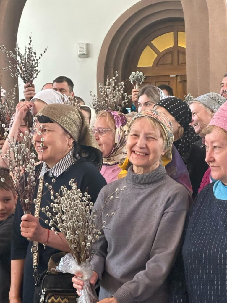 Во время утрени, по прочтении Святого Евангелия, было совершено помазание освященным елеем верующих, собравшихся в храме накануне праздника — Входа Господня в Иерусалим.