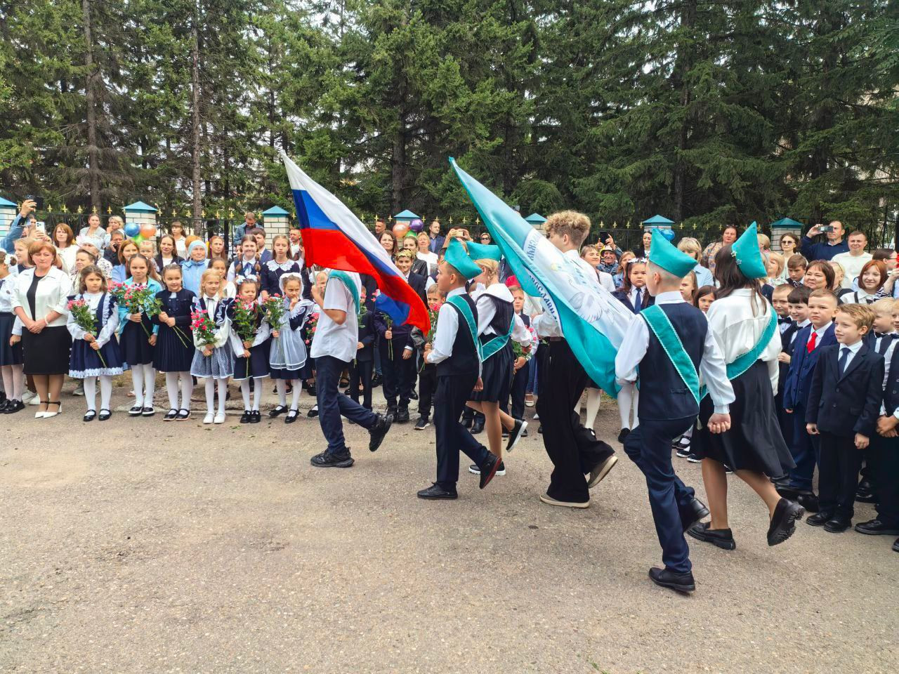 На традиционной торжественной линейке собрались ученики, учителя, родители, а также почетные гости.