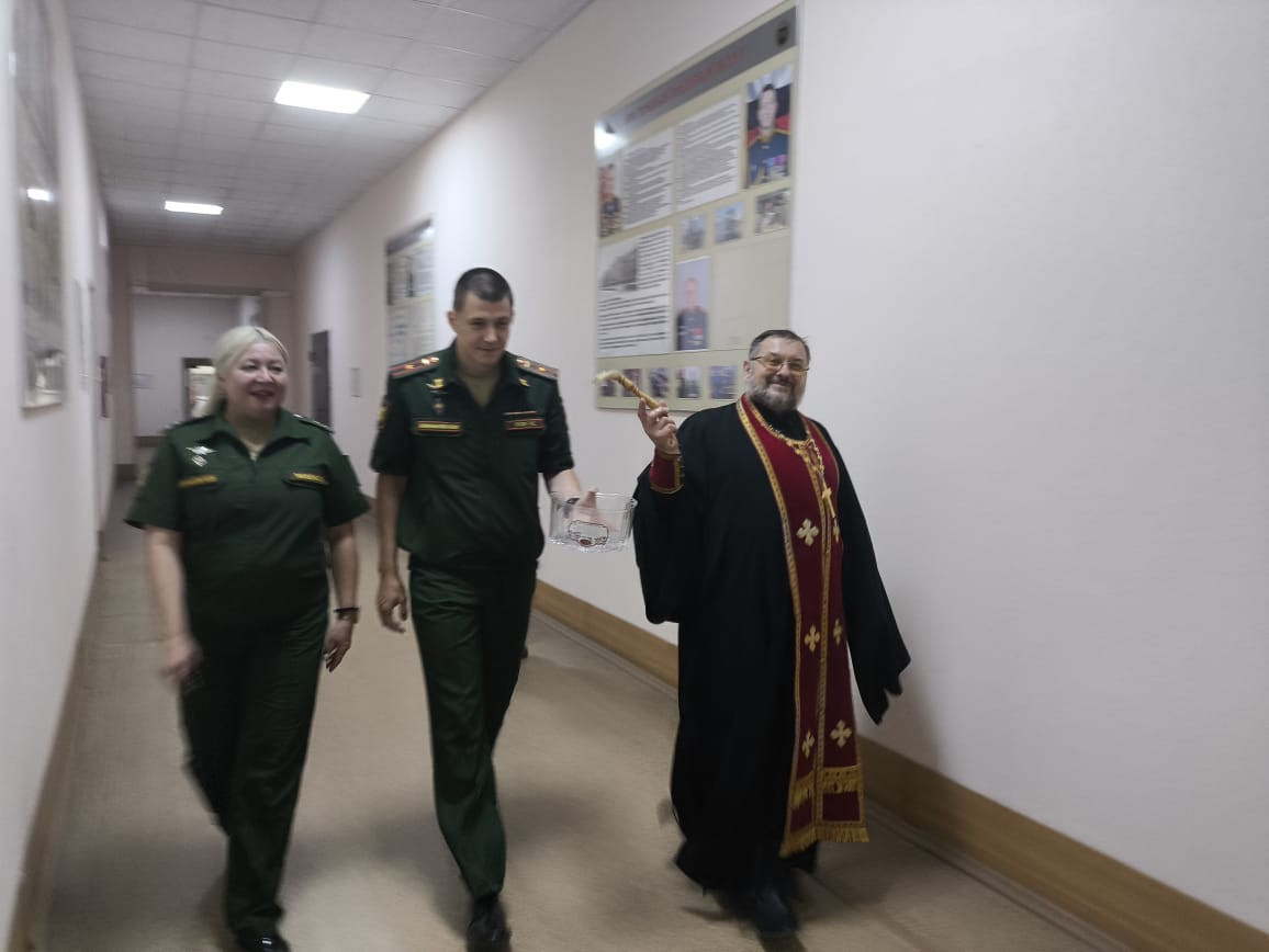 Священнослужитель совершил благодарственный молебен и освятил служебные помещения. За богослужением молился личный состав штаба армии.