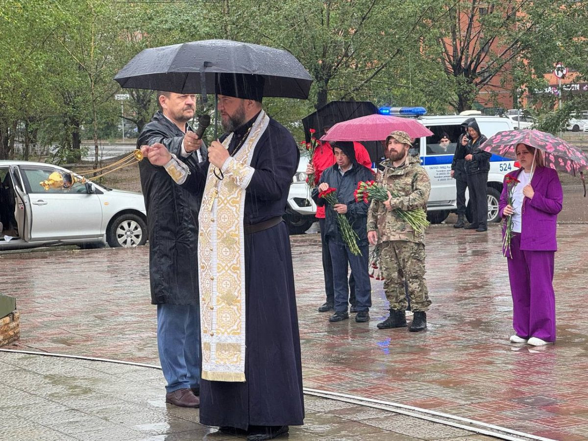 1 июля 2025 года настоятель храма Воздвижения Креста Господня г. Читы иерей Алексий Янковский принял участие в митинге посвященном Дню ветеранов боевых действий.