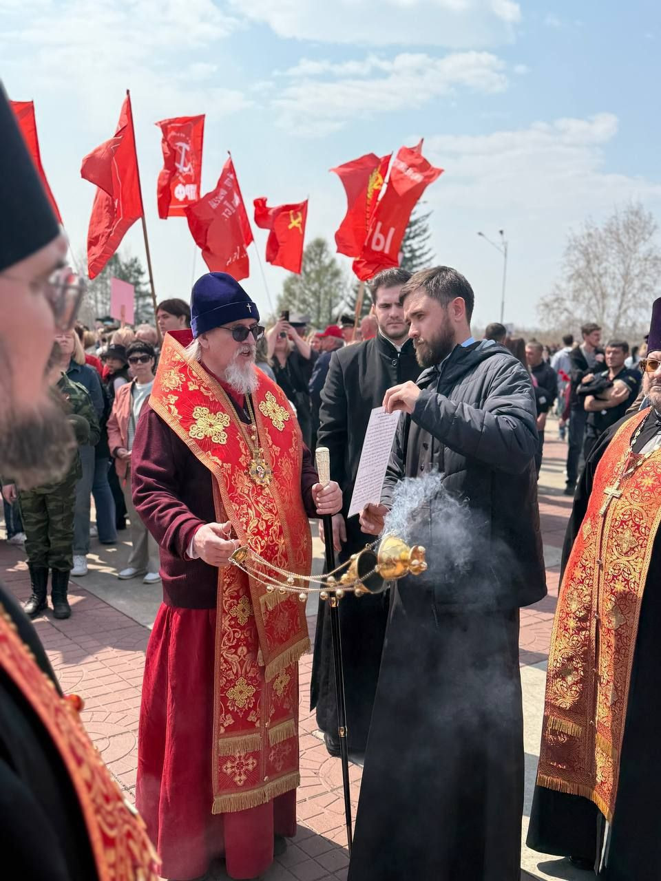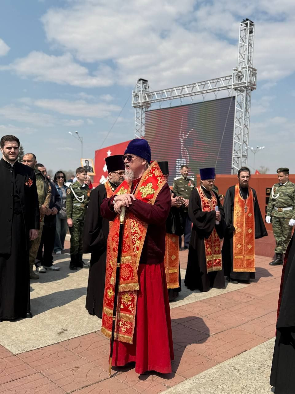 Мероприятие проходило в парке Победы. В конце владыка в сослужении клириков Читинской епархии совершили заупокойную Литию нашим воинам героям!