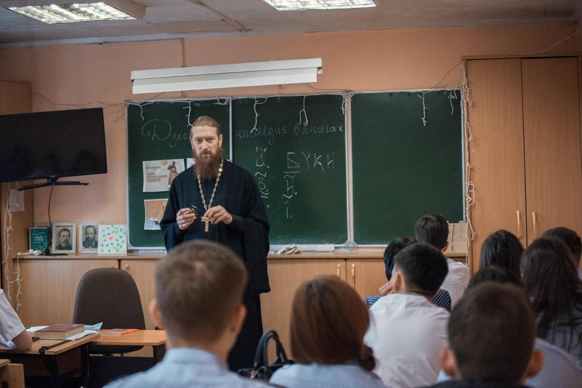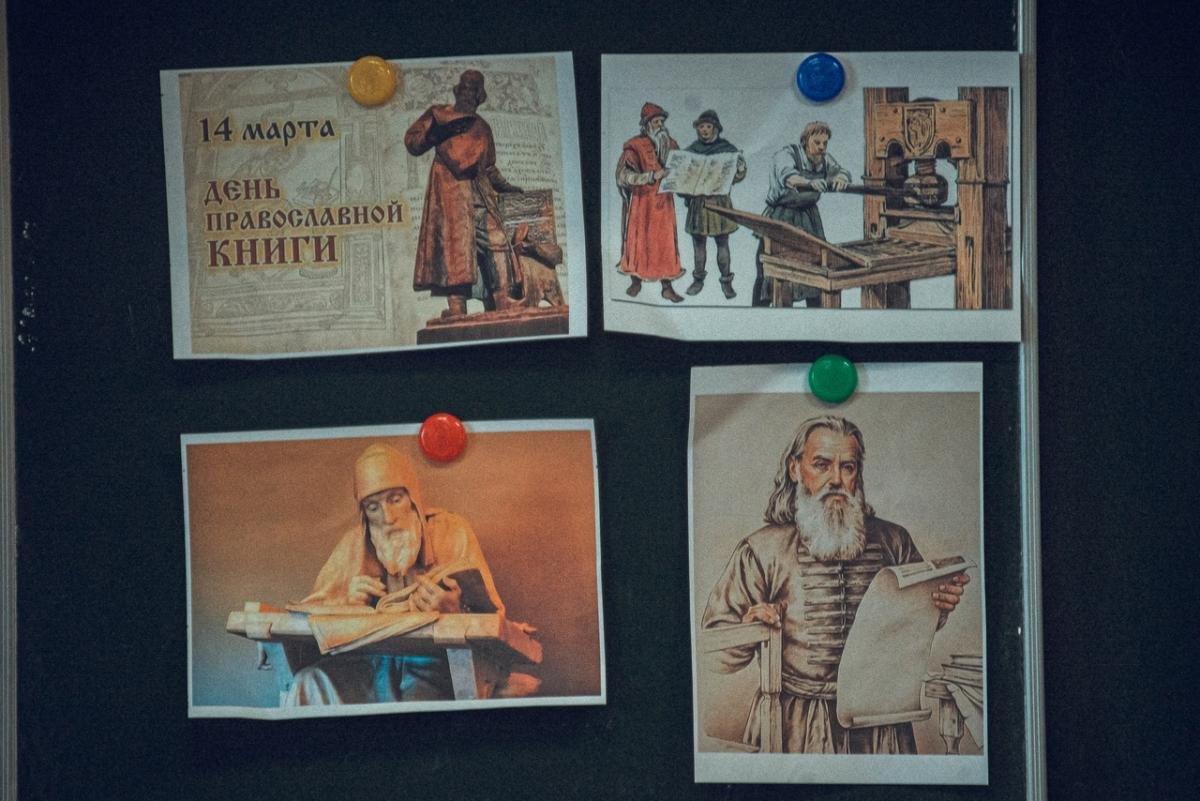 В продолжение беседы священнослужитель представил для обозрения учащихся несколько духовных изданий и рассказал, что знать и помнить труды первопечатников должен каждый культурный человек.