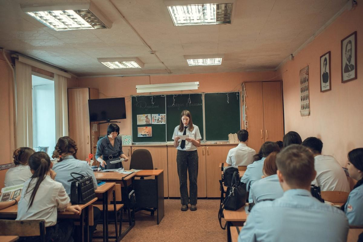 Преподаватель русского языка и литературы Доповец Наталья Александровна, ведущая и организатор открытого урока, обратилась к слушателям с приветственным словом, после чего учащиеся выступили с тематическими сообщениями.