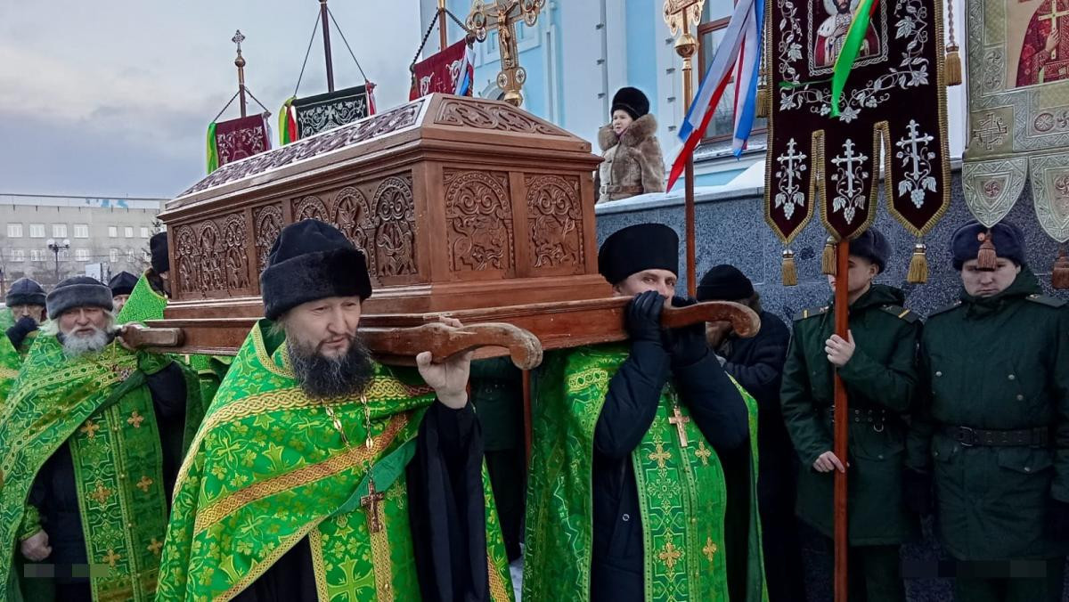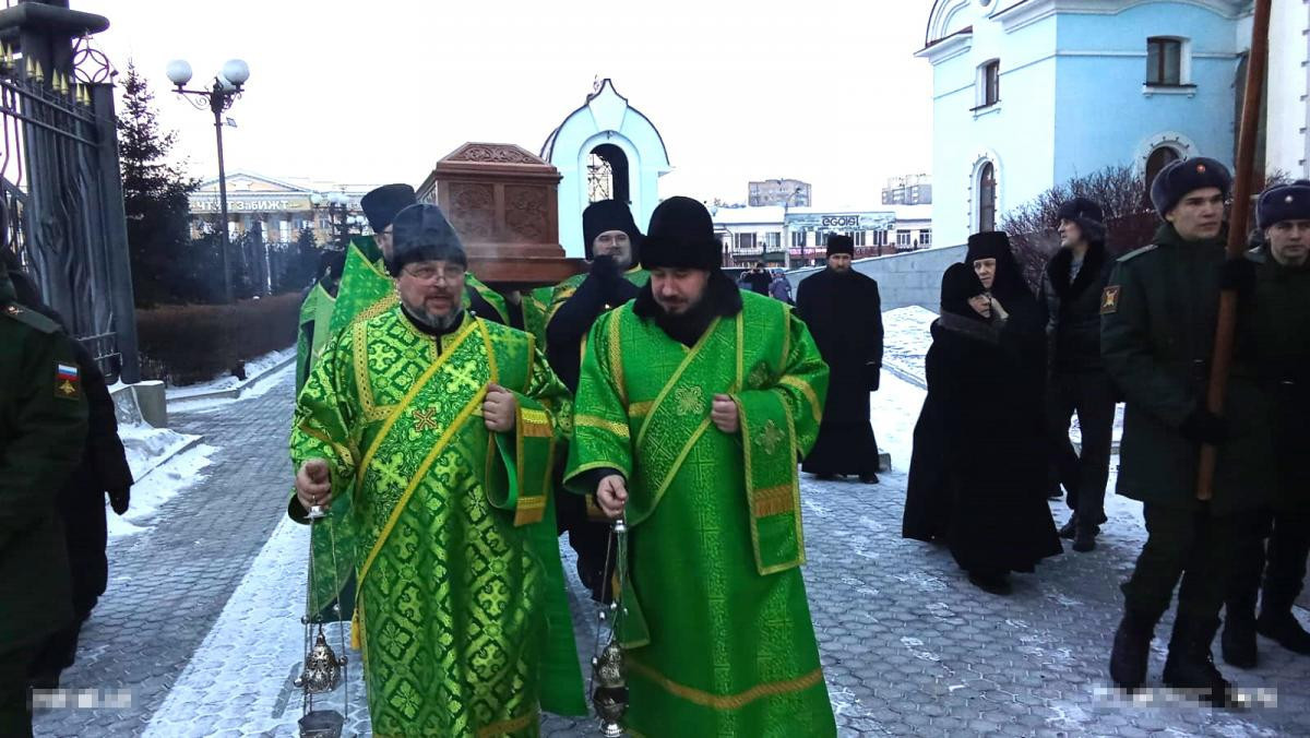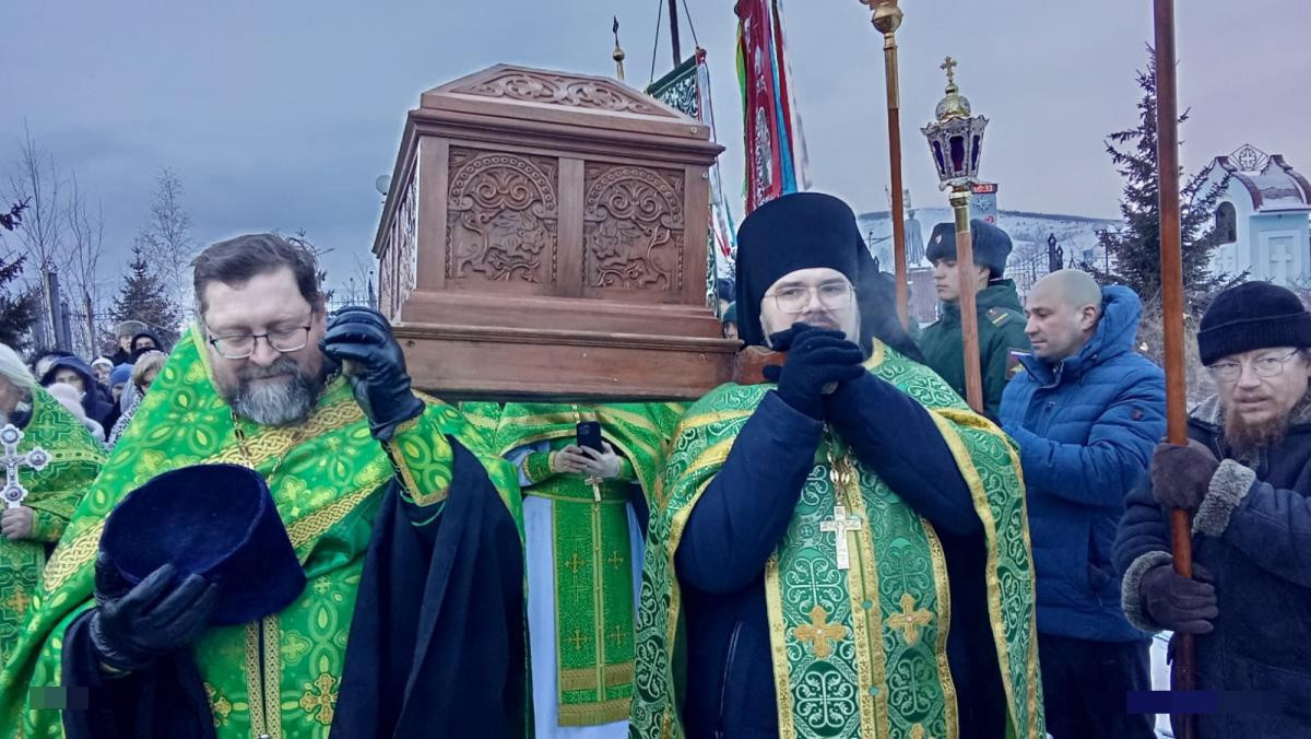 По завершении Литургии был совершен традиционный крестный ход посвященный преподобному Варлааму Чикойскому. Рака с мощами преподобного была обнесена вокруг главного храма Забайкалья.