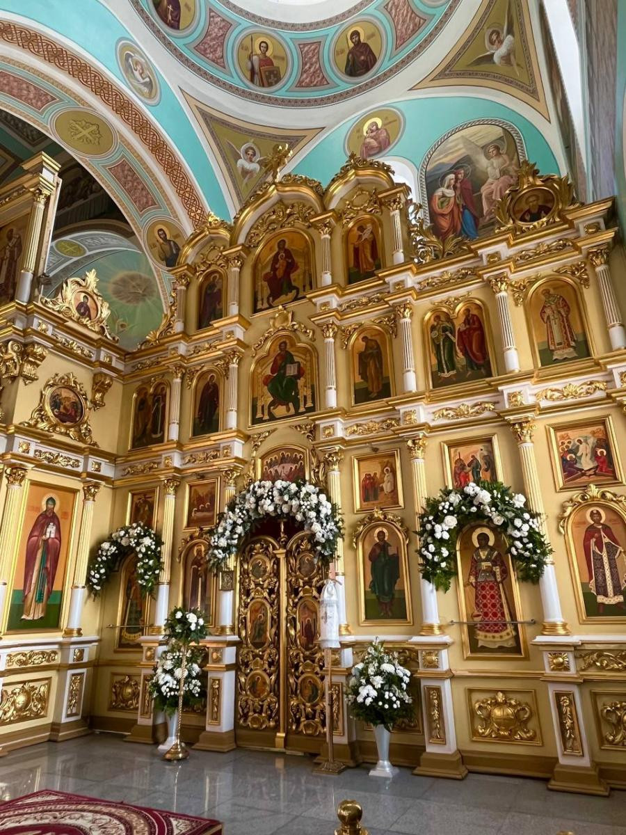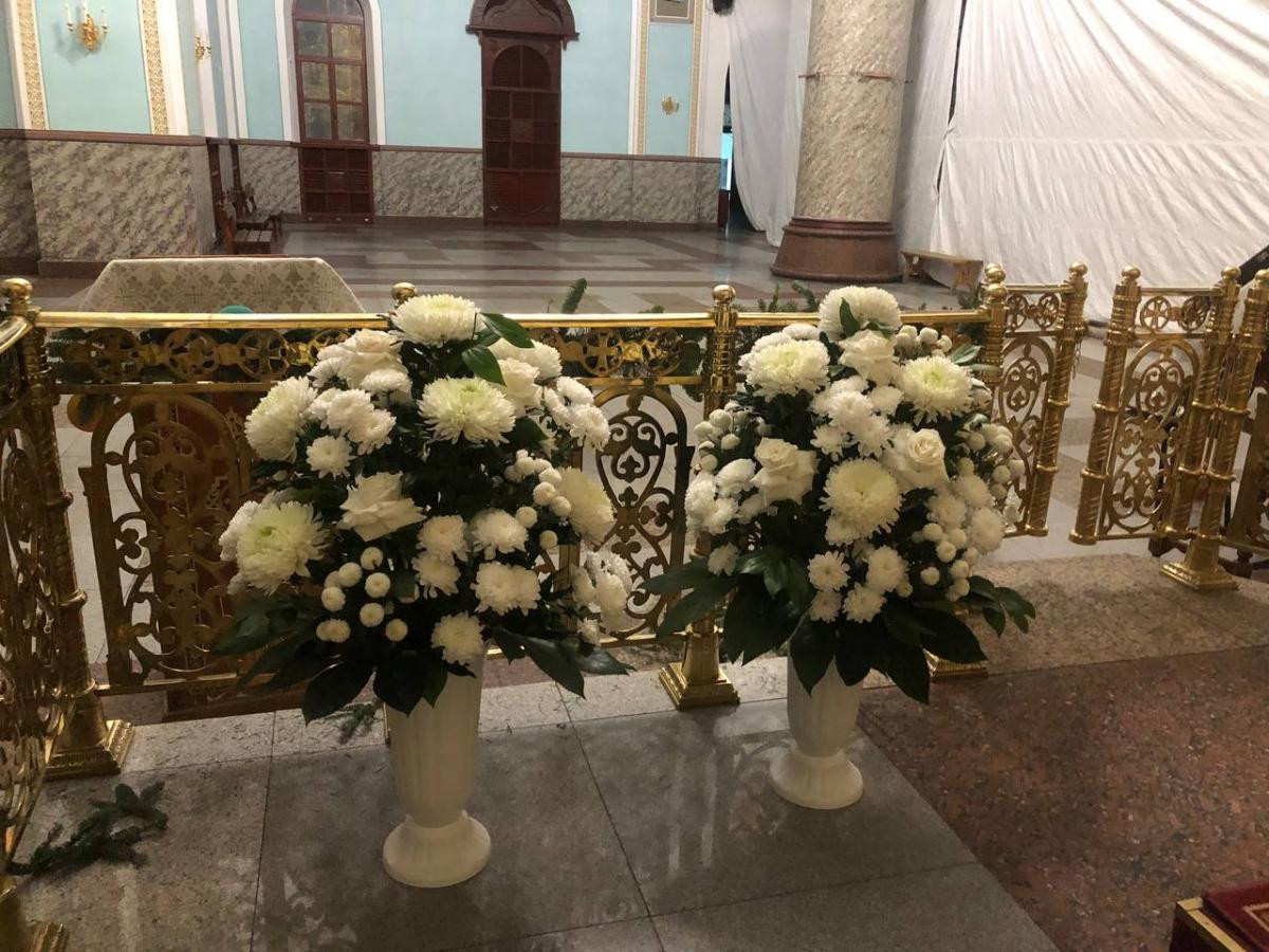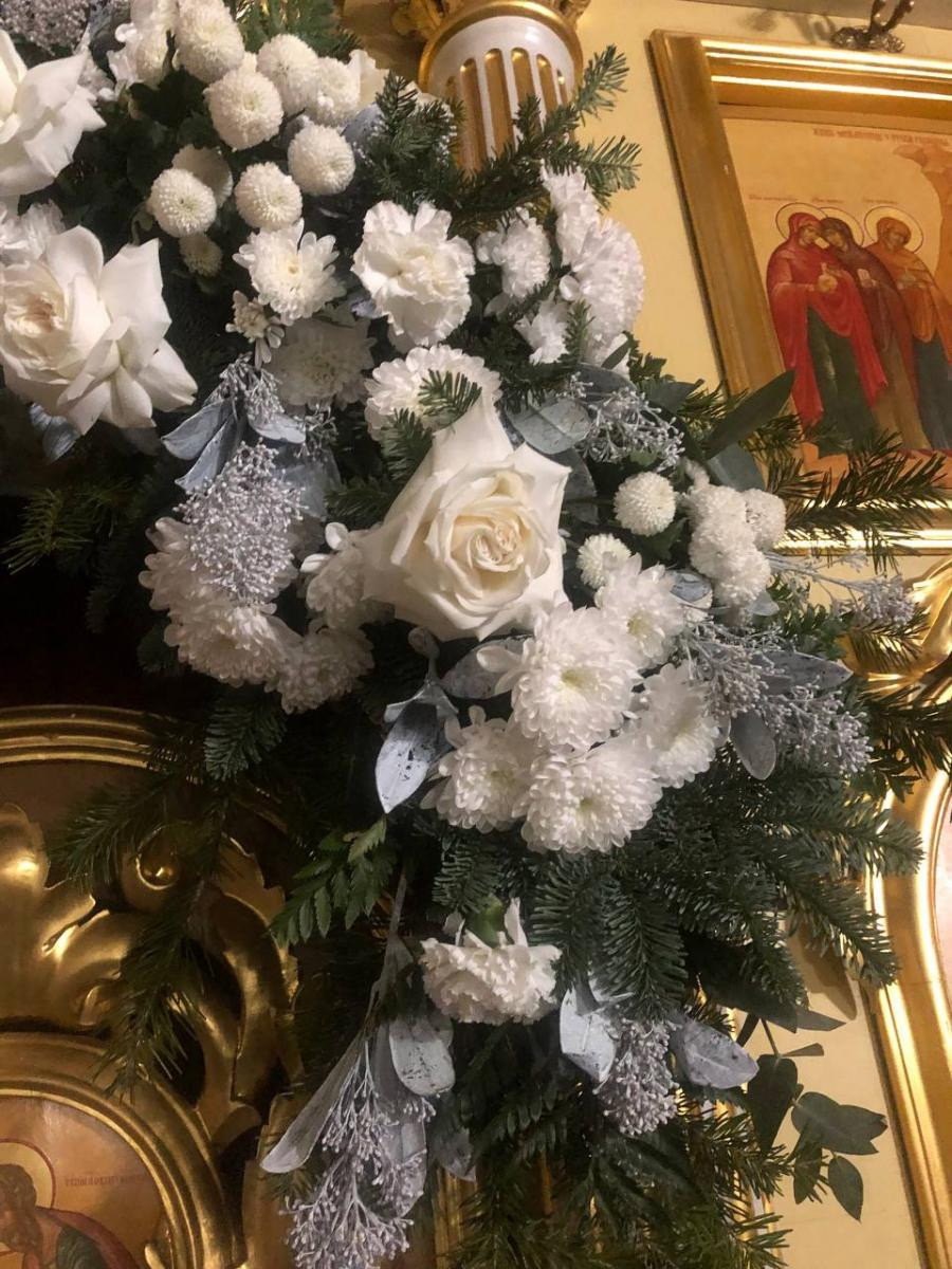 Центральное место в украшении занял предел святого благоверного великого князя Александра Невского. Особое внимание было уделено иконе Рождества Христова. Нежные сосновые ветви, украшенные серебристыми шарами, сочетались с композициями из шишек и белых цветов. Также флористическими элементами был облагорожен иконостас и богослужебная утварь к праздничным богослужениям.