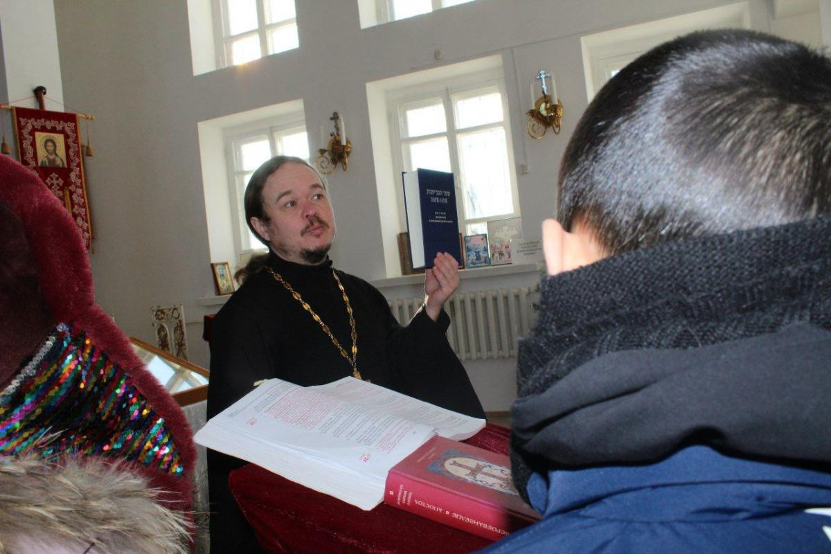 Кроме того, иерей Андрей уделил значительное время рассказу о Библии. Он простым и понятным языком рассказал о Ветхом и Новом Заветах, о главных персонажах и сюжетных линиях, приводя яркие примеры и интересные факты. Дети задавали множество вопросов, проявляя искренний интерес к рассказу.