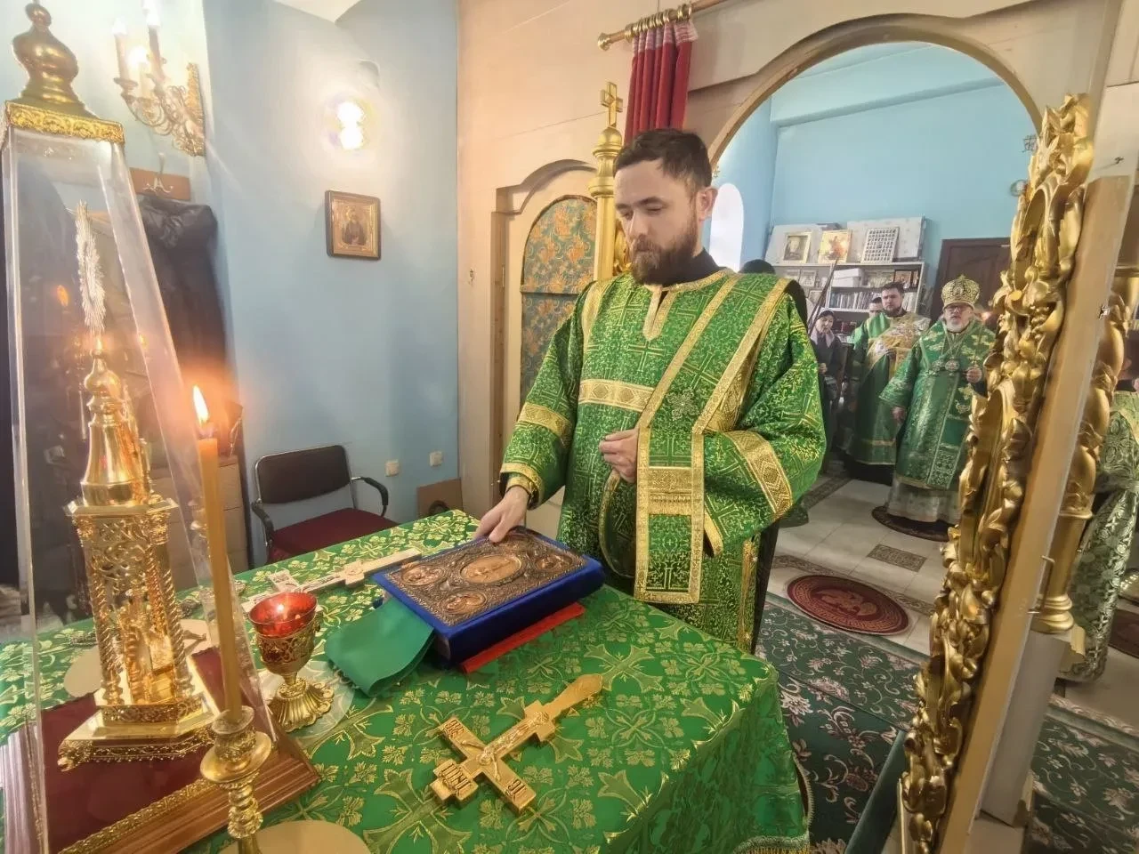 Вечером, 7 октября 2025 года, преставление преподобного Сергия, игумена Радонежского, чудотворца. Преподобной Евфросинии Александрийской. Преподобной Евфросинии Суздальской. Митрополит Читинский и Петровск-Забайкальский Димитрий совершил Всенощное бдение в храме в честь преподобного Сергия, игумена Радонежского чудотворца в Чите, при Забайкальском государственном университете.