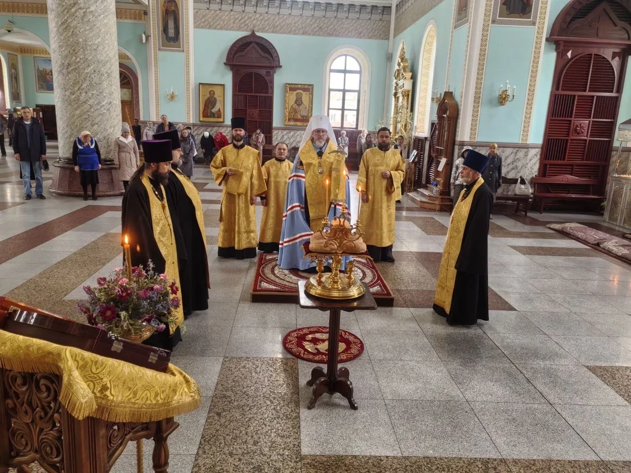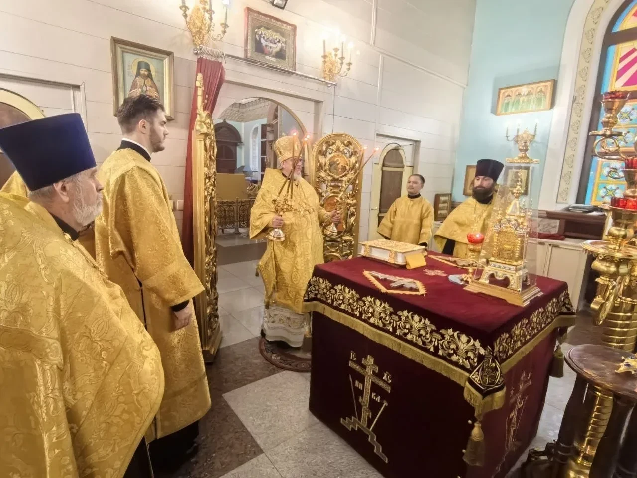 Вечером, 8 октября 2025 года, преставление апостола и евангелиста Иоанна Богослова. Свт. Тихона, патриарха Московского и всея Руси. Митрополит Читинский и Петровск-Забайкальский Димитрий совершил Всенощное бдение в кафедральном соборе Казанской иконы Божией Матери города Читы. Его Высокопреосвященству сослужили: протоиерей Михаил Андрусь; иерей Владимир Новоспасский; иерей Валерий Шаферов. Диаконский чин: иеродиакон Иннокентий (Федоров); диакон Дионисий Донской. Богослужебные песнопения исполнил архиерейский молодёжный хор Казанского кафедрального собора г. Читы, под руководством Татьяны Александровны Медведевой. Во время Всенощного бдения были совершены великая вечерня, лития с освящением хлебов, вина и елея, утреня с чтением Евангелия и помазанием всех молящихся освященным елеем. По окончании богослужения Владыка обратился к верующим с архипастырским словом назидания и благословил молящихся.