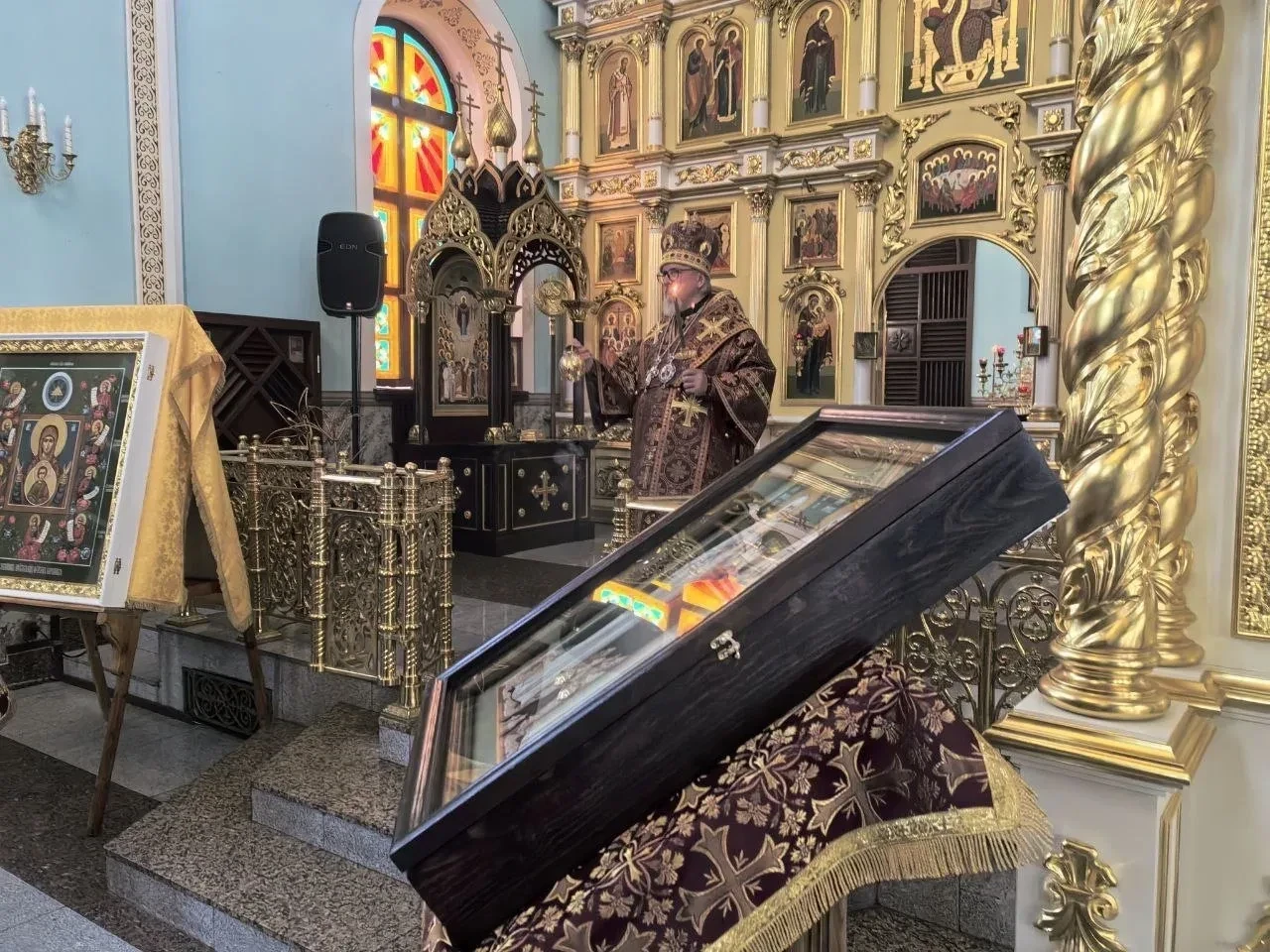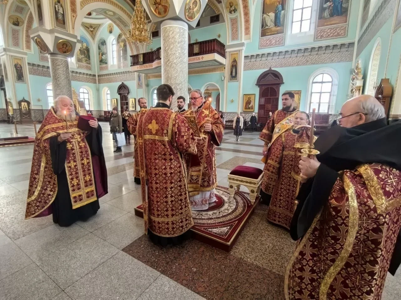 Вечером, 10 октября 2025 года, день памяти преподобных схимонаха Кирилла и схимонахини Марии, родителей прпеподобного Сергия Радонежского. Обретение мощей первомученницы великой княгини Елисаветы. Митрополит Читинский и Петровск-Забайкальский Димитрий возглавил Всенощное бдение в кафедральном соборе Казанской иконы Божией Матери города Читы.