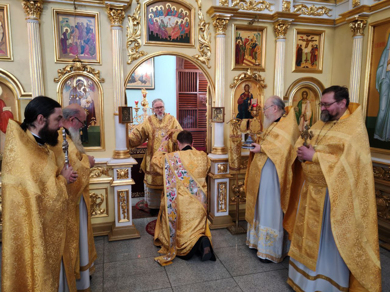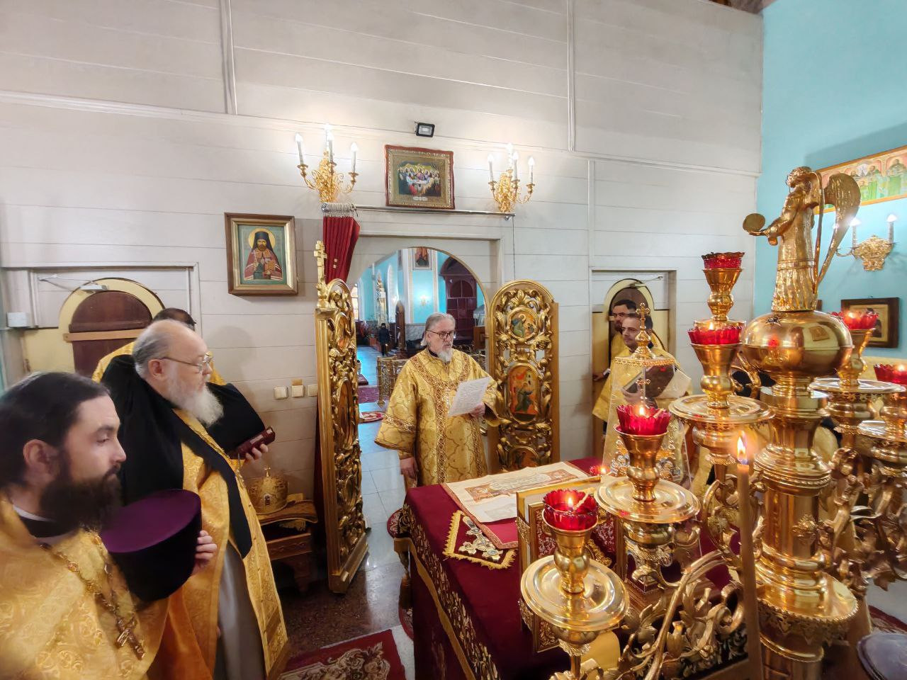 29 октября 2025 года, обретение мощей святителя Иоанна, митрополита Тобольского. Мученика Лонгина сотника, иже при Кресте Господнем. Преподобного Лонгина Коряжемского. Митрополит Читинский и Петровск-Забайкальский Димитрий возглавил Божественную литургию в кафедральном соборе Казанской иконы Божией Матери города Читы. Его Высокопреосвященству сослужили: клирик женского монастыря в честь Всех святых в России просиявших, в пгт. Атамановка Читинского района - иеромонах Алипий (Федотов); насельник Успенского мужского монастыря города Читы - иеромонах Феофан (Груша); настоятель храма в честь великомученика Димитрия Солунского - иерей Алексей Шаталов; ключарь Казанского кафедрального собора - иерей Валерий Шаферов. Диаконский чин возглавили: диакон Илия Хасанов; диакон Дионисий Донской. За богослужением молились прихожане и гости храма. По благословению Святейшего Патриарха Московского и всея Руси Кирилла на сугубой ектении были вознесены особые прошения и молитва о Святой Руси. Богослужебные песнопения исполнил хор Казанского кафедрального собора. Проповедь перед причастием произнес - иеромонах Алипий (Федотов). По окончании богослужения Глава Забайкальской митрополии обратился к верующим с архипастырским словом назидания и благословил молящихся.