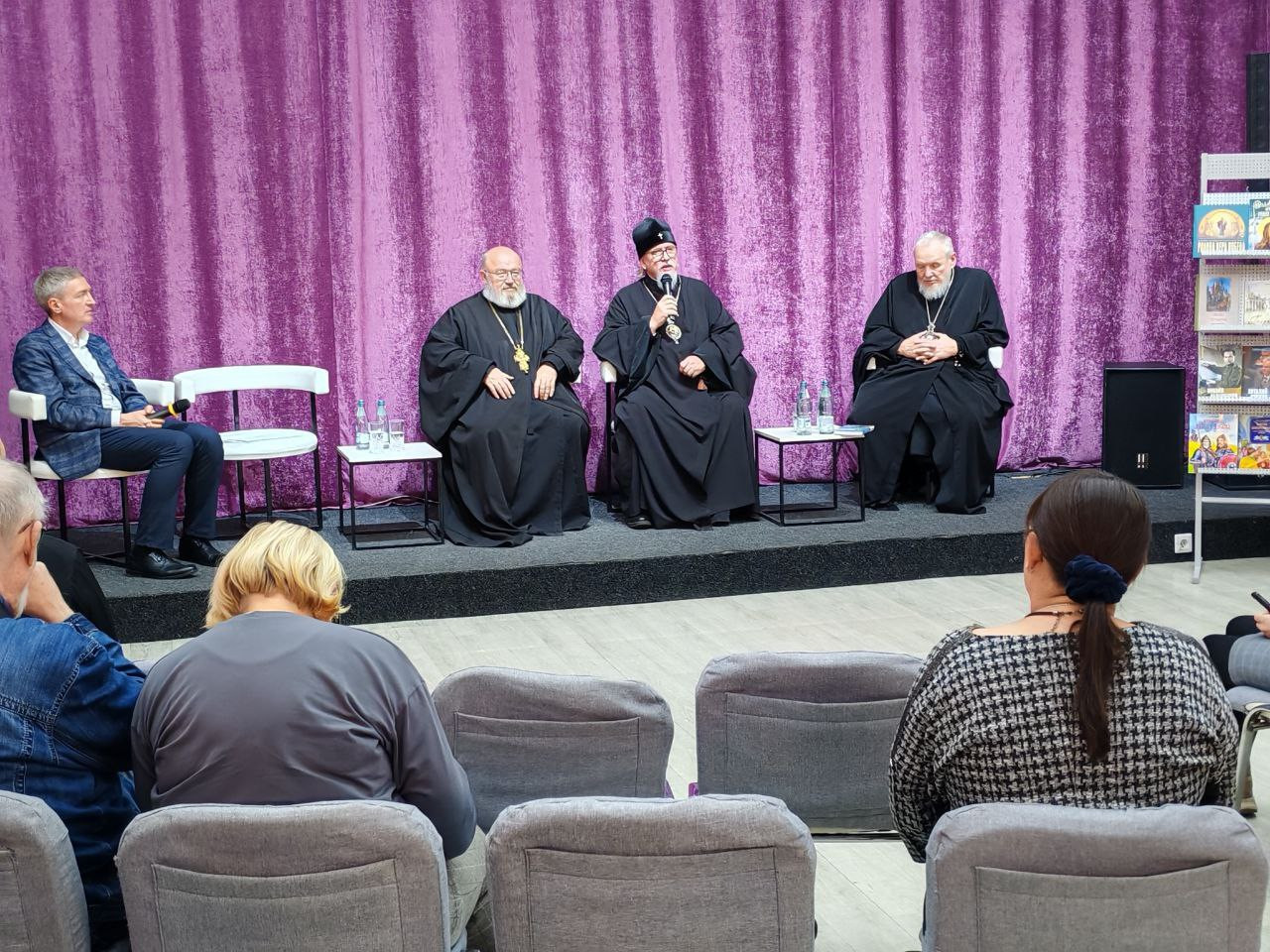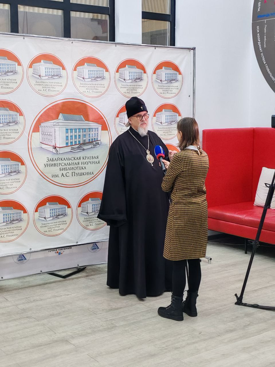 28 и 29 октября 2025 года митрополит Читинский и Петровск-Забайкальский Димитрий принял участие в книжном фестивале “Забайкальская осень — 2025”. Фестиваль представлял целую серию встреч с православными книгоиздателями и писателями. Читинская епархия совместно с городским порталом "Чита.Ру", Минкультуры Забайкальского края, Забайкальской краевой библиотекой имени Александра Сергеевича Пушкина, при поддержке компании “Удоканская медь”, организовали встречу в Забайкальской краевой библиотеке, в ходе которой прошли весьма важные обсуждения о роли православной книги в современном мире, а также, как на неё влияют новые технологии и искусственный интеллект. В эпоху быстрого информационного потока и обилия противоречивых идей православная литература продолжает служить надёжным духовным ориентиром. Она помогает людям найти ответы на вечные вопросы, укрепить веру и сохранить нравственные ценности. Православная книга является важным инструментом в воспитании подрастающего поколения, формировании у него правильных жизненных ориентиров. Была затронута тема обсуждения электронных и аудиокниг, которая затрагивает вопросы их преимуществ, недостатков и того, как они влияют на восприятие и усвоение информации по сравнению с традиционными бумажными книгами. Безусловно оба варианта обладают рядом преимуществ, которые делают их полезными для современных читателей и слушателей. Электронные книги ценят за портативность и удобство, а аудиокниги — за возможность совмещать чтение с другими занятиями. Но тем не менее, печатная версия книги по-прежнему обладает рядом актуальных преимуществ, которые недоступны в электронных и аудиоформатах. Эти достоинства связаны как с особенностями восприятия информации человеком, так и с эмоциональным и физическим опытом чтения. Спикерами данной встречи являлись: митрополит Читинский и Петровск-Забайкальский Димитрий; главный редактор издательства Журнала Московской Патриархии - епископ Балашихинский и Орехово-Зуевский Николай; епископ Нерчинский и Краснокаменский Макарий; клирик Ставропольской епархии, известный блогер и преподаватель Херсонского государственного педагогического университета - протоиерей Геннадий Шкиль.
