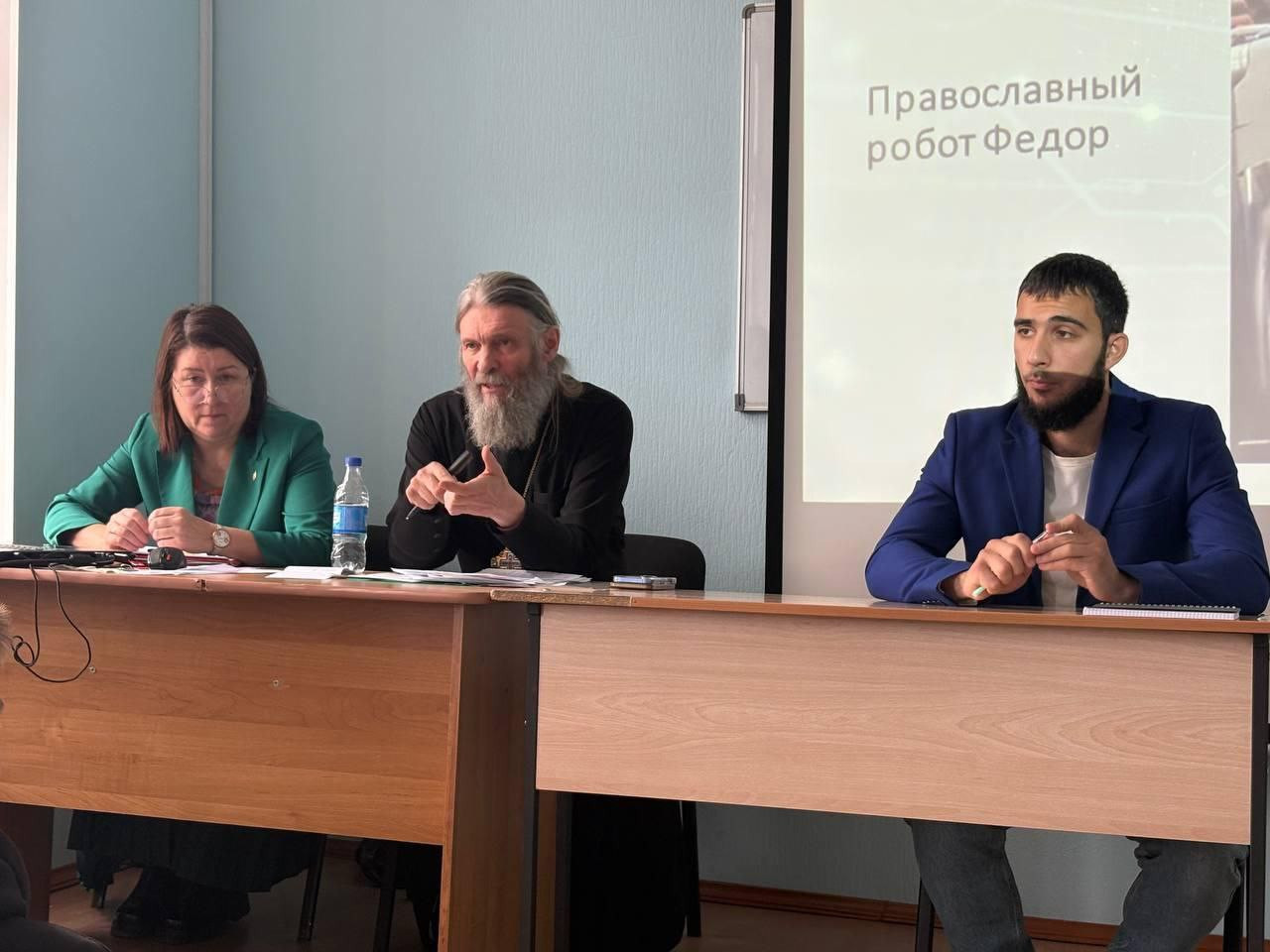 27 октября 2025 года на Энергетическом факультете ЗабГУ состоялось мероприятие по теме: «Бог не из машины. Искусственный интеллект и религия». Мероприятие проводилось в формате межконфессионального диалога. В качестве спикеров приглашены представители: Русской православной церкви - Забайкальской митрополии, Читинского дацана и Духовного управления мусульман Забайкальского края. В ходе работы были обсуждены следующие вопросы: Как сохранить целостность личности, не утратить ценностные ориентиры в эпоху информационного потока? Может ли религия помочь нам справиться с информационным шумом? Как традиционные религии относятся к идее «искусственного божества»? Может ли религия сосуществовать с «новой этикой», предлагаемой искусственным интеллектом? Возникают ли в настоящее время у религиозных конфессий проблемные вопросы со светским обществом? По благословению митрополита Читинского и Петровск- Забайкальского Димитрия в его работе принял участие председатель Отдела религиозного образования и катехизации протоиерей Павел Матвеев. В своих выступлениях он отметил, что ИИ, это реальность нашей жизни, с которой нам предстоит считаться. Особо была подчёркнута опасность, которая связана с внедрением новых технологий. В этих условиях крайне важным является осознание человеком своей подлинной сущности, как творения Божия. Именно вера, как опора на Бога может стать гарантией от превращения человека в придаток машины, научит принимать его этически верные решения. Мероприятие было организовано Координационным центром по противодействию идеологии терроризма ЗабГУ с целью укрепления гражданской идентичности, воспитания духовно - нравственных качеств личности студентов и формирования положительной оценки государственно-конфессиональной политики РФ и социальных программ традиционных религий.