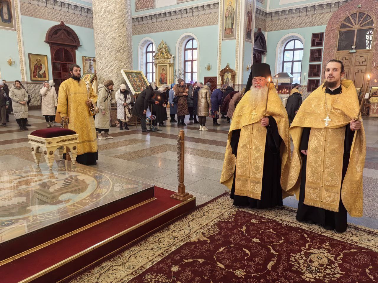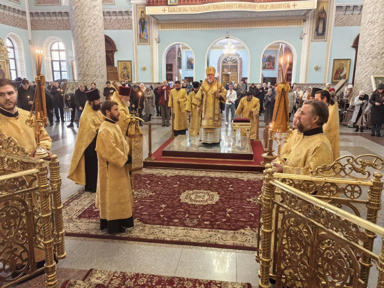 Вечером, 1 ноября 2025 года, Православная Церковь чтит память великомученника Артемия; преподобного Гавриила Самтаврийского. Митрополит Читинский и Петровск-Забайкальский Димитрий совершил Всенощное бдение в кафедральном соборе Казанской иконы Божией Матери города Читы. Богослужение проходило в главном пределе собора. Его Высокопреосвященству сослужили: клирик Казанского Кафедрального собора - протоиерей Андрей Федотов; насельник Успенского мужского монастыря города Читы - иеромонах Феофан (Груша); настоятель храма великомученика Димитрия Солунского города Читы - иерей Алексий Шаталов; ключарь Казанского кафедрального собора - иерей Валерий Шаферов; клирик Казанского Кафедрального собора - иерей Дионисий Миронов. Диаконский чин: иеродиакон Иннокентий (Федоров); диакон Михаил Воробьев; диакон Илия Хасанов; диакон Дионисий Донской. Богослужебные песнопения исполнил архиерейский молодёжный хор Казанского кафедрального собора города Читы под руководством Татьяны Александровны Медведевой. Во время Всенощного бдения были совершены великая вечерня, лития с освящением хлебов, вина и елея, утреня с чтением Евангелия и помазанием всех молящихся освященным елеем. За богослужением молились прихожане собора.