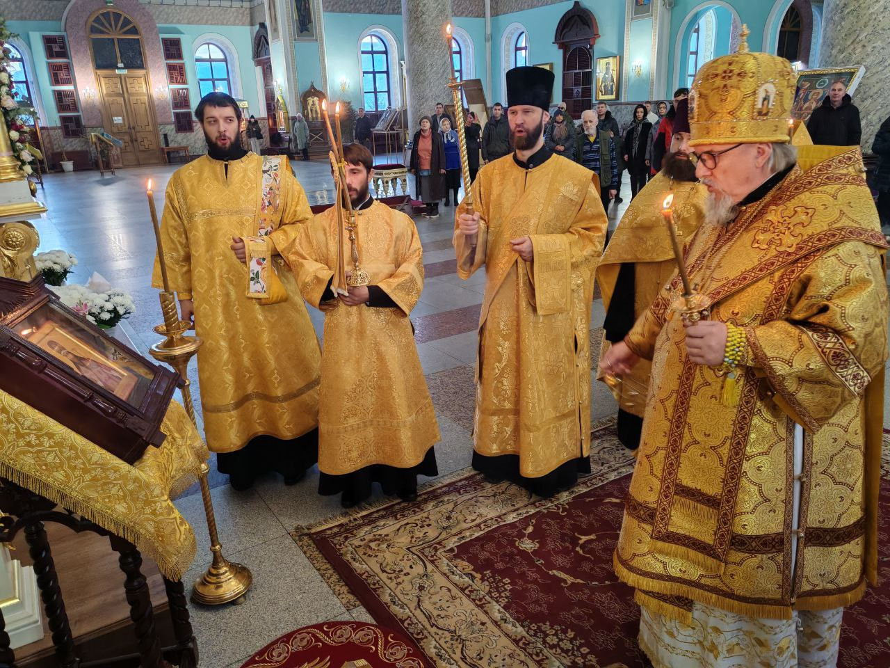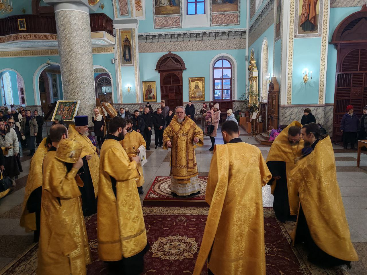 Его Высокопреосвященству сослужили клирики Казанского кафедрального собора:
