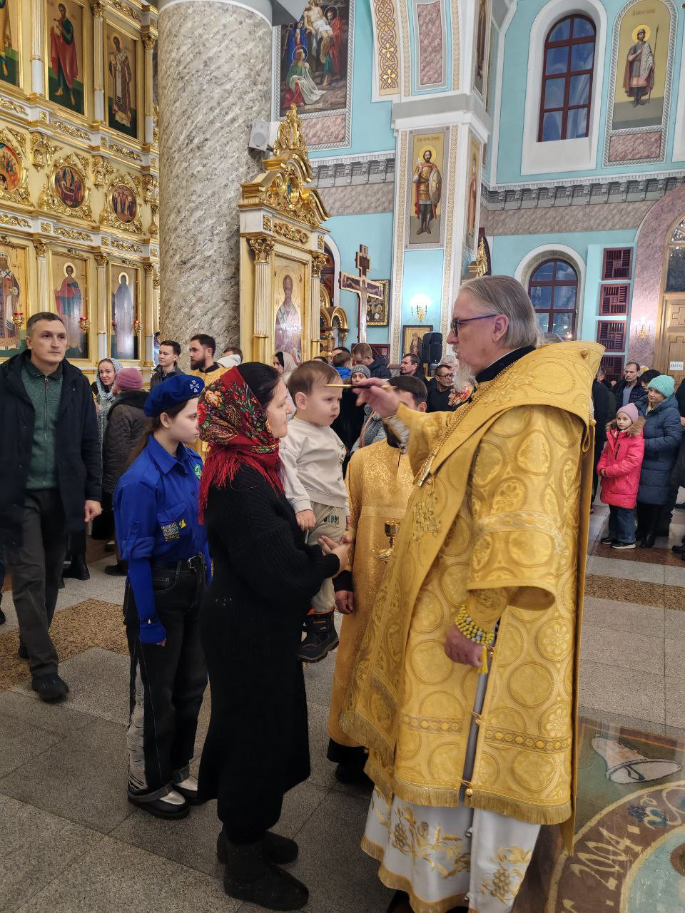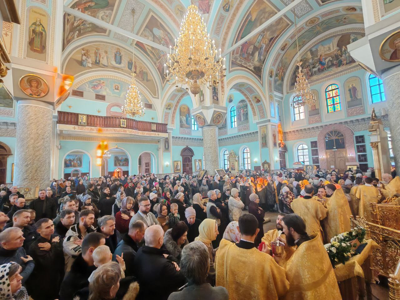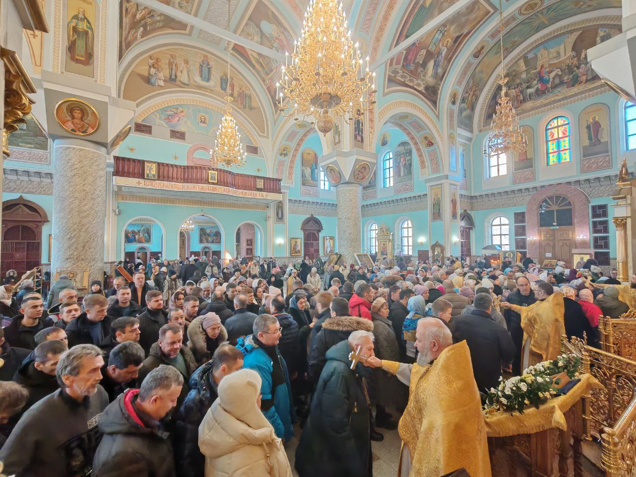 За богослужением молились прихожане собора.