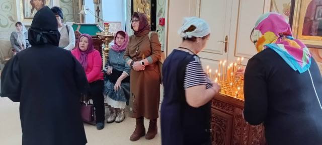 Женщины помолились в храме, поклонились святыням обители, поставили свечи. Они написали записки на длительное поминовение воинов, получили ответы на наболевшие вопросы.