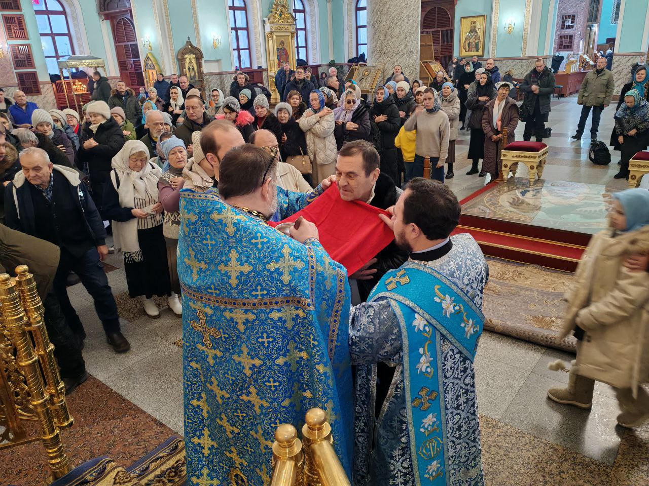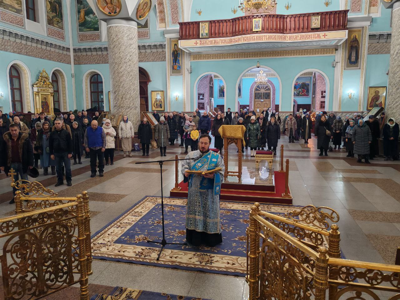 За богослужением молились прихожане собора.