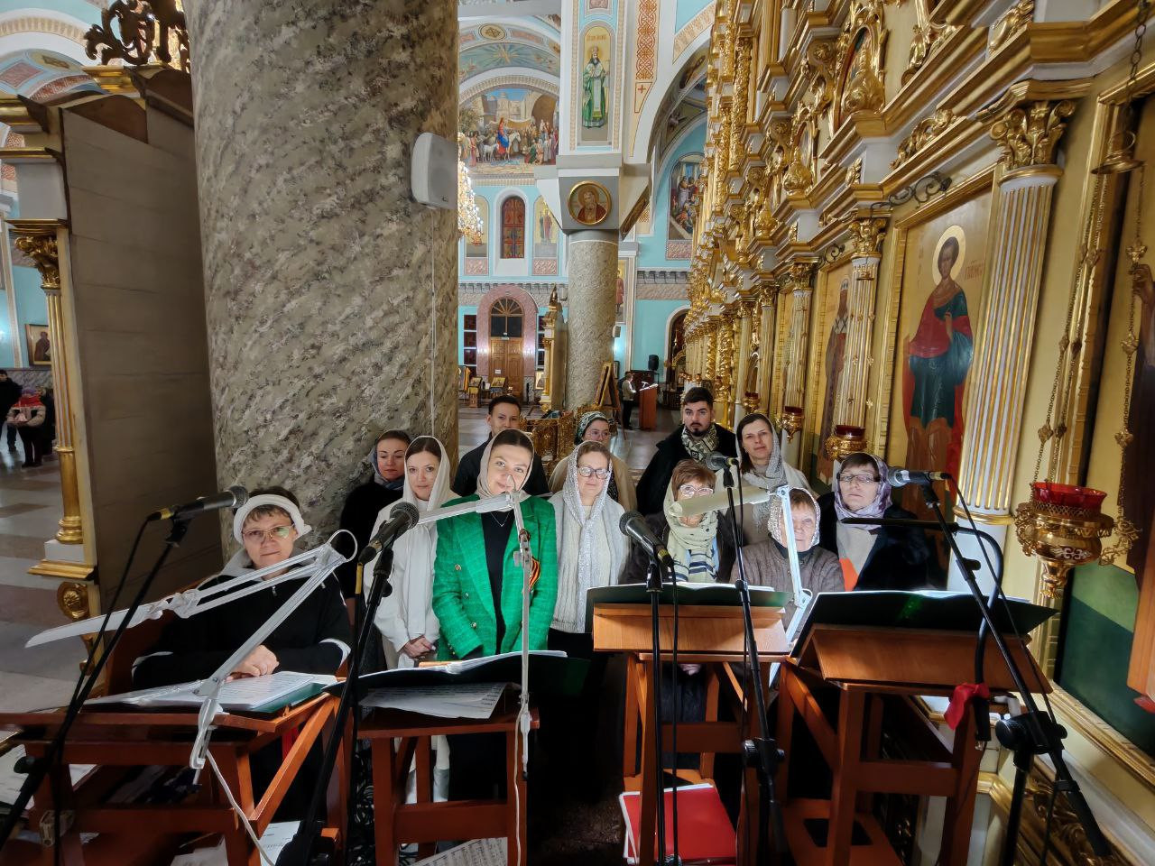 Богослужебные песнопения исполнил архиерейский молодёжный хор Казанского кафедрального собора под руководством Татьяны Медведевой.