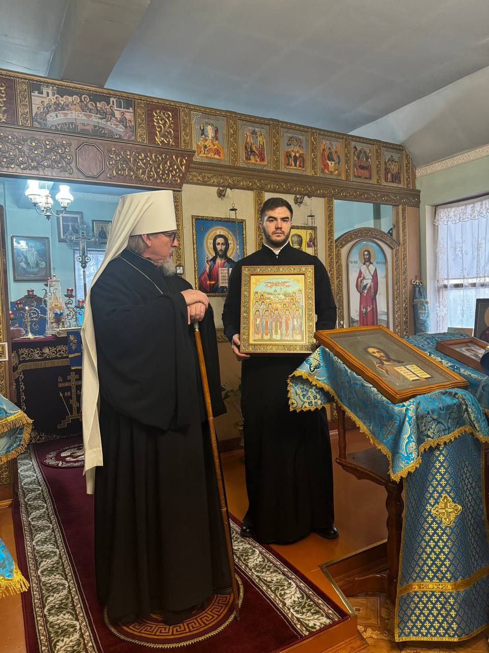В памятование о сегоднешнем празднике в честь иконы Божией Матери "Знамение", владыка митрополит вручил наместнику монастыря икону Собора Глинских преподобных старцев.
