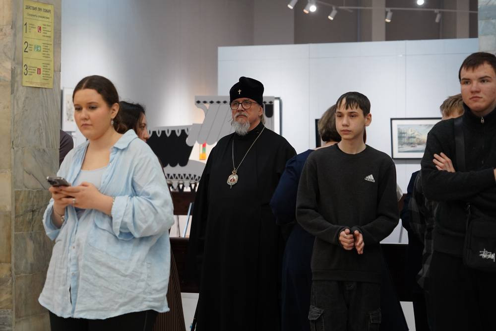 Владыка Димитрий, о. Алипий и инокиня Феоктиста посетили открытие выставки.