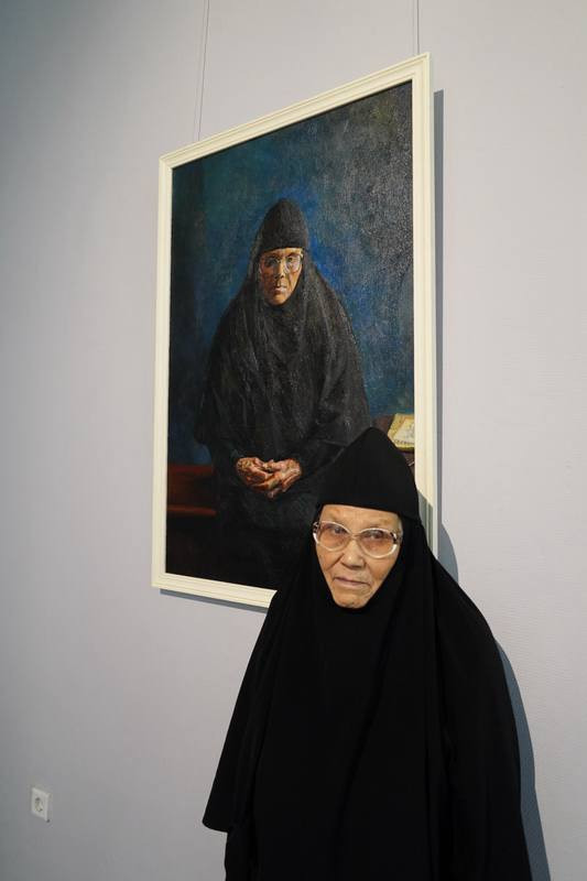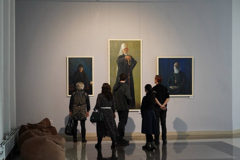 В экспозиции представлено более 70 произведений, среди которых портреты митрополита Читинского и Петровск-Забайкальского Димитрия, иеромонаха Алипия (Федотова) и инокини Феоктисты (Абрамовой), написанные художником Андреем Максимовым.