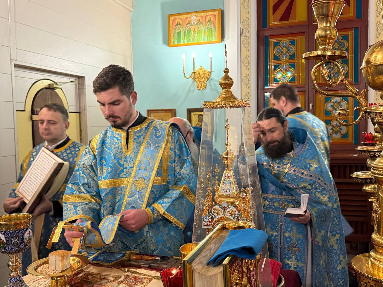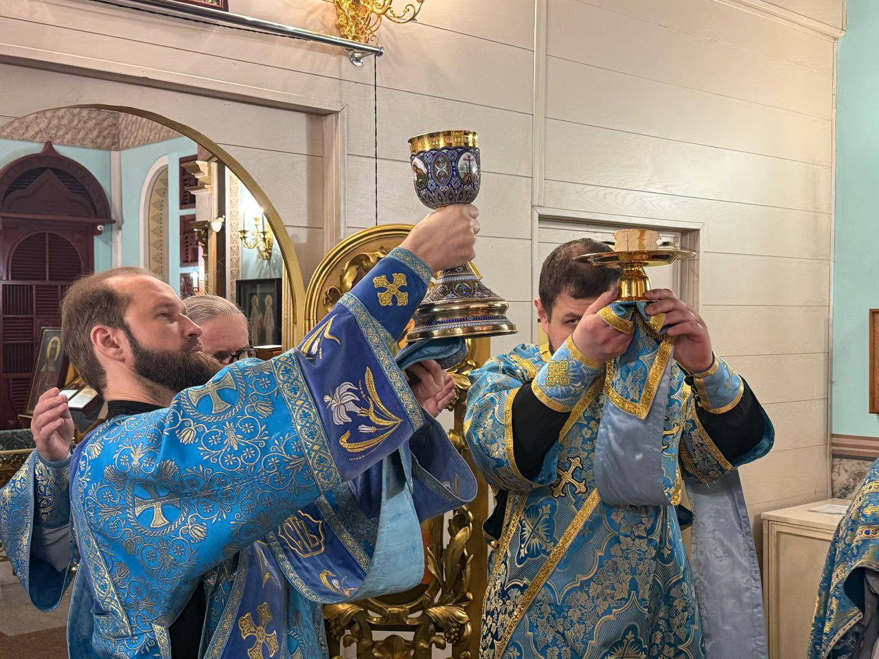 Диаконский чин возглавили: иеродиакон Иннокентий (Фёдоров); диакон Илия Хасанов; диакон Дионисий Донской; диакон Кирилл Усынин.