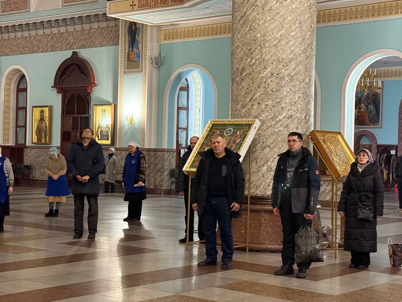 За богослужением молились прихожане собора.