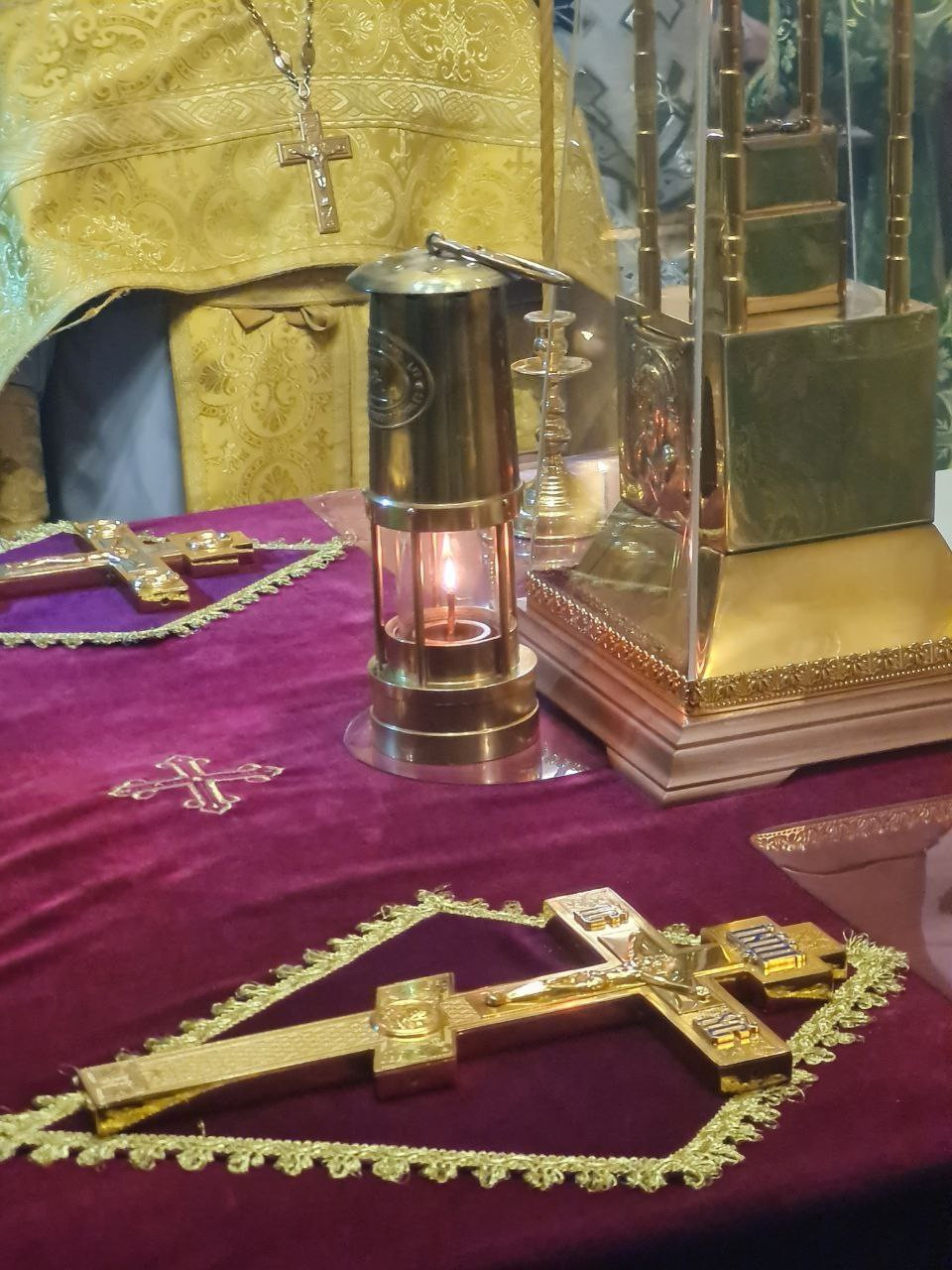 От этой благословенной лампады зажглись и все остальные свечи и лампады находящиеся в храме