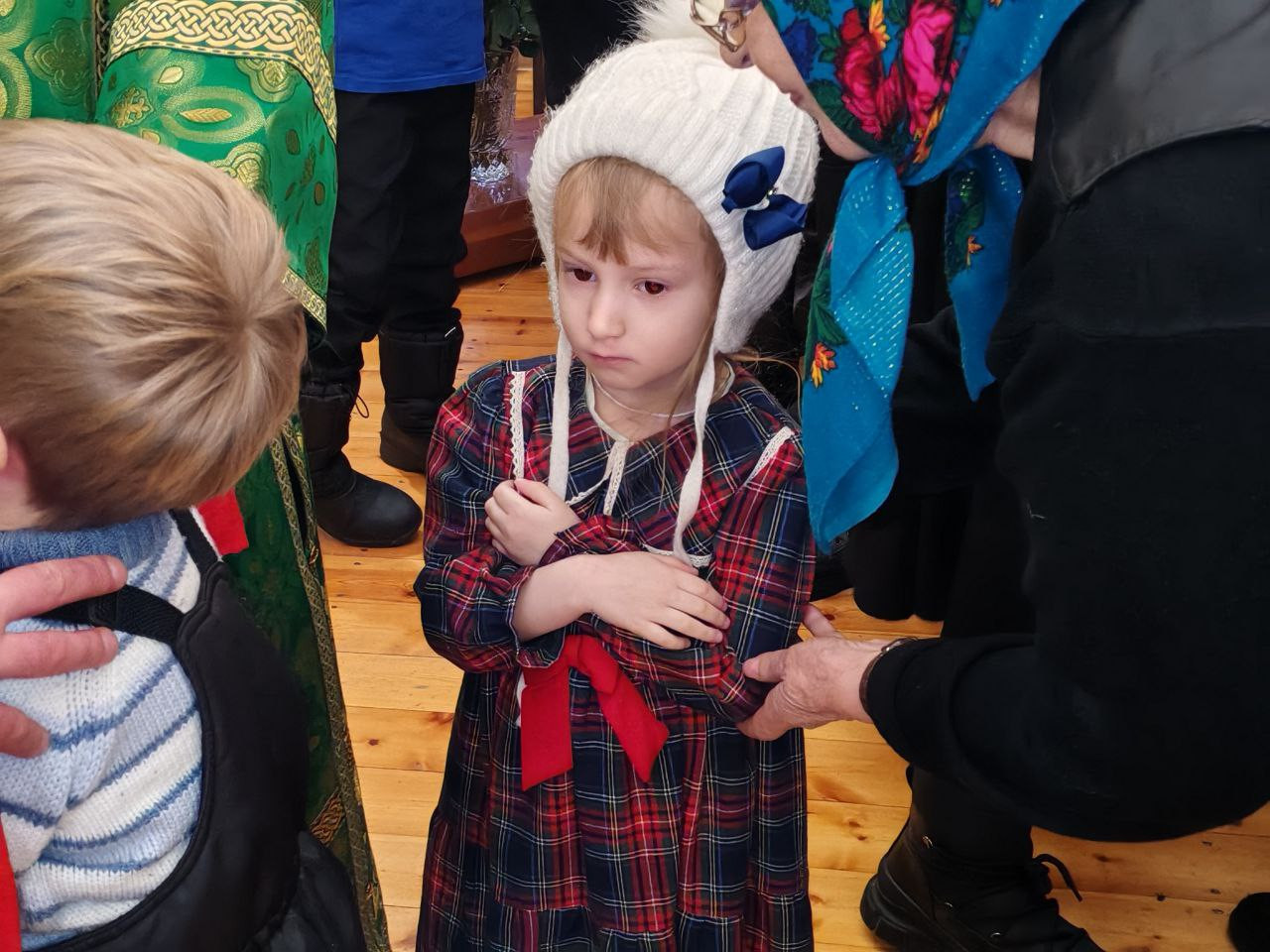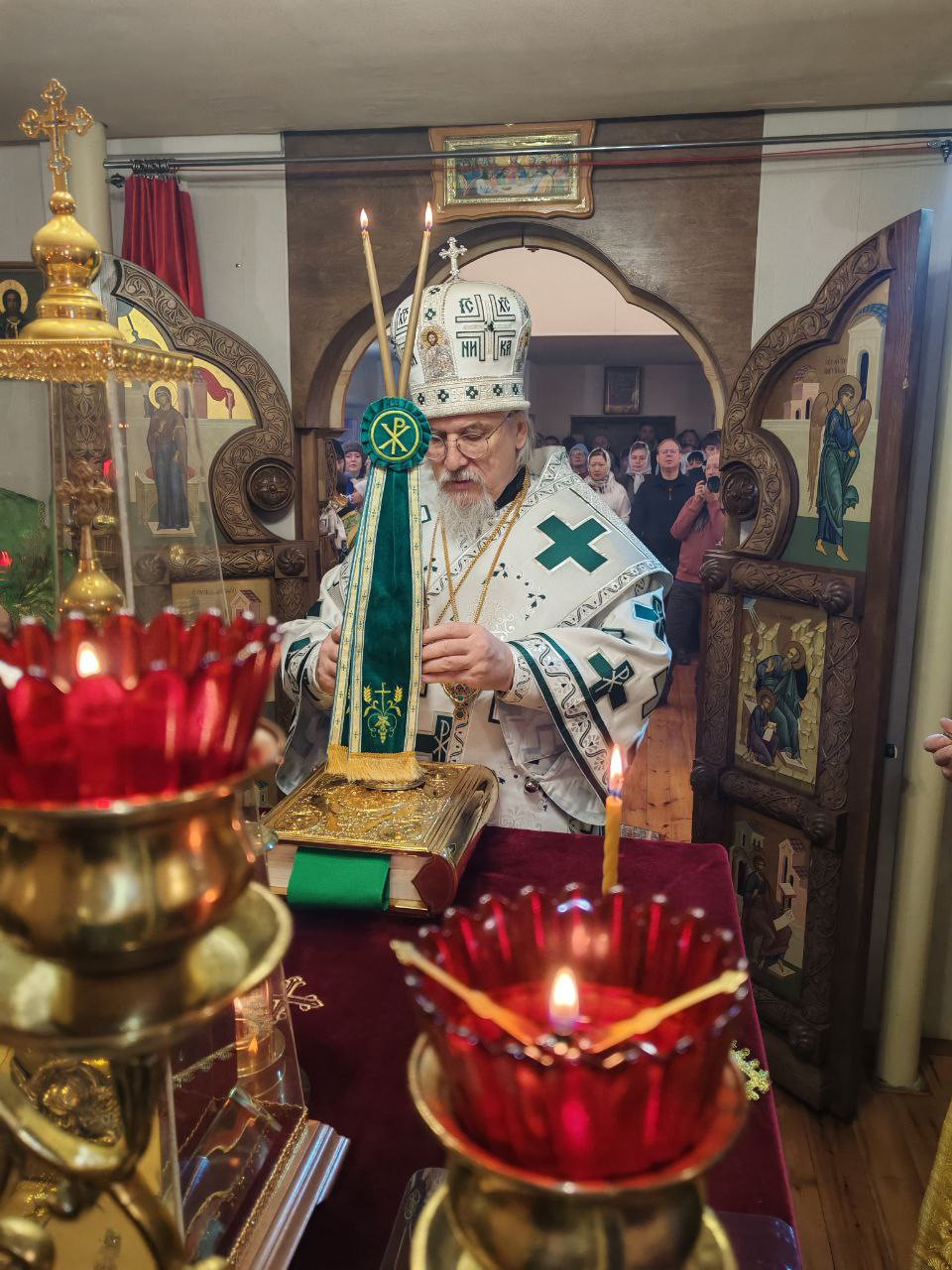 Перед началом богослужения Братство Православных следопытов имени священномученика Сергия Знаменского доставило Вифлеемский огонь, от которого владыка митрополит возжег архиерейские свечи для дальнейшего совершения священодействий.