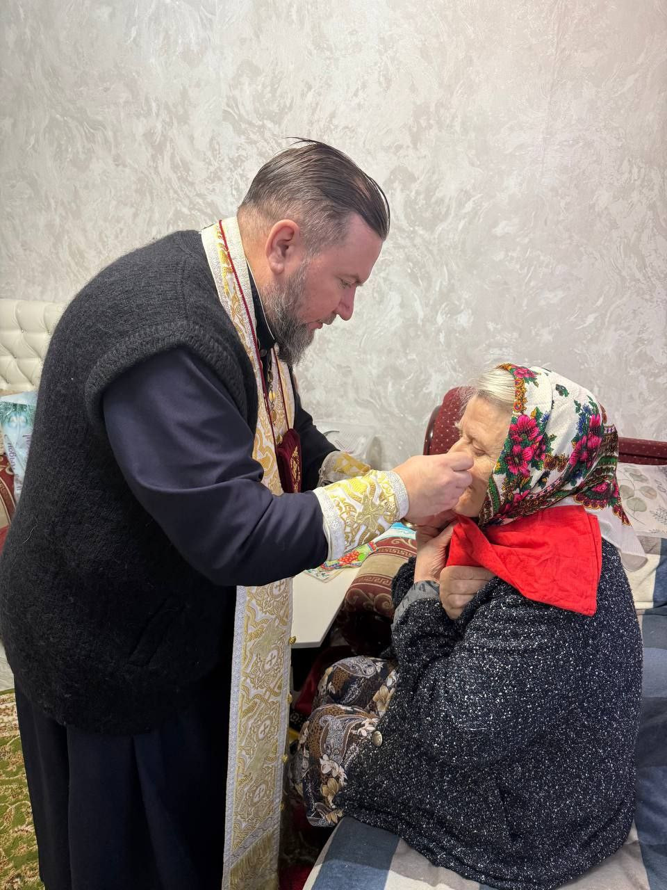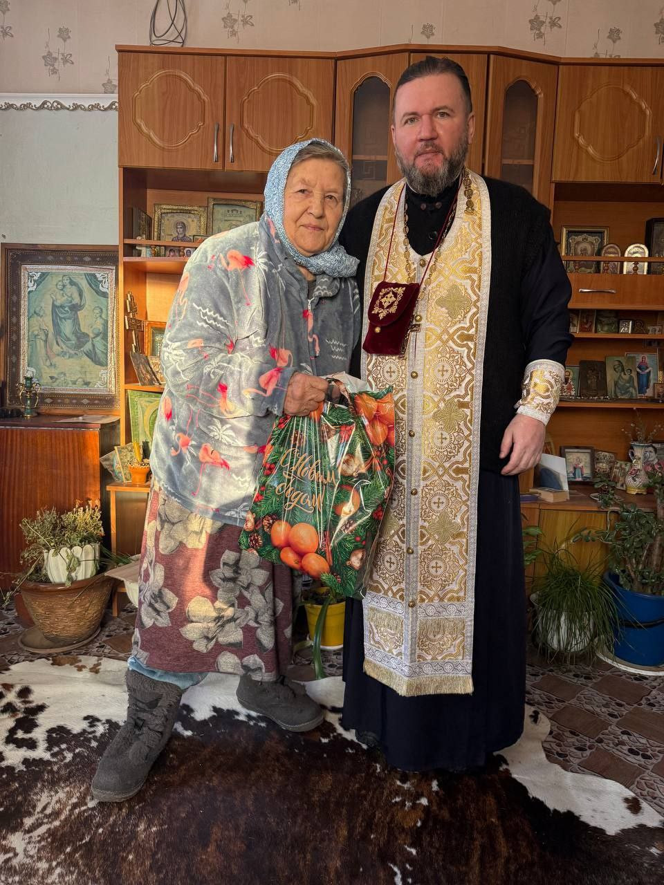 Настоятель храма прихода в честь Воздвижения Креста Господня поздравил с Новолетием и наступающим Рождеством пожилых прихожан поселка КСК, не имеющих возможности посещать богослужения по болезни.