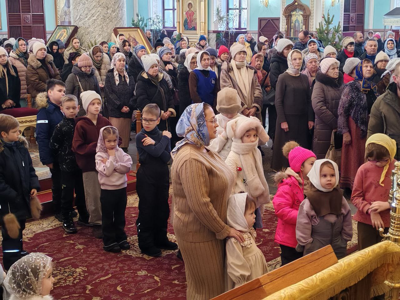 4 января 2026 года, в Неделю 30-ю по Пятидесятнице, пред Рождеством Христовым, святых отец. Предпразднство Рождества Христова. День памяти великомученицы Анастасии Узорешительницы, митрополит Читинский и Петровск-Забайкальский Димитрий возглавил Божественную литургию в кафедральном соборе Казанской иконы Божией Матери города Читы.