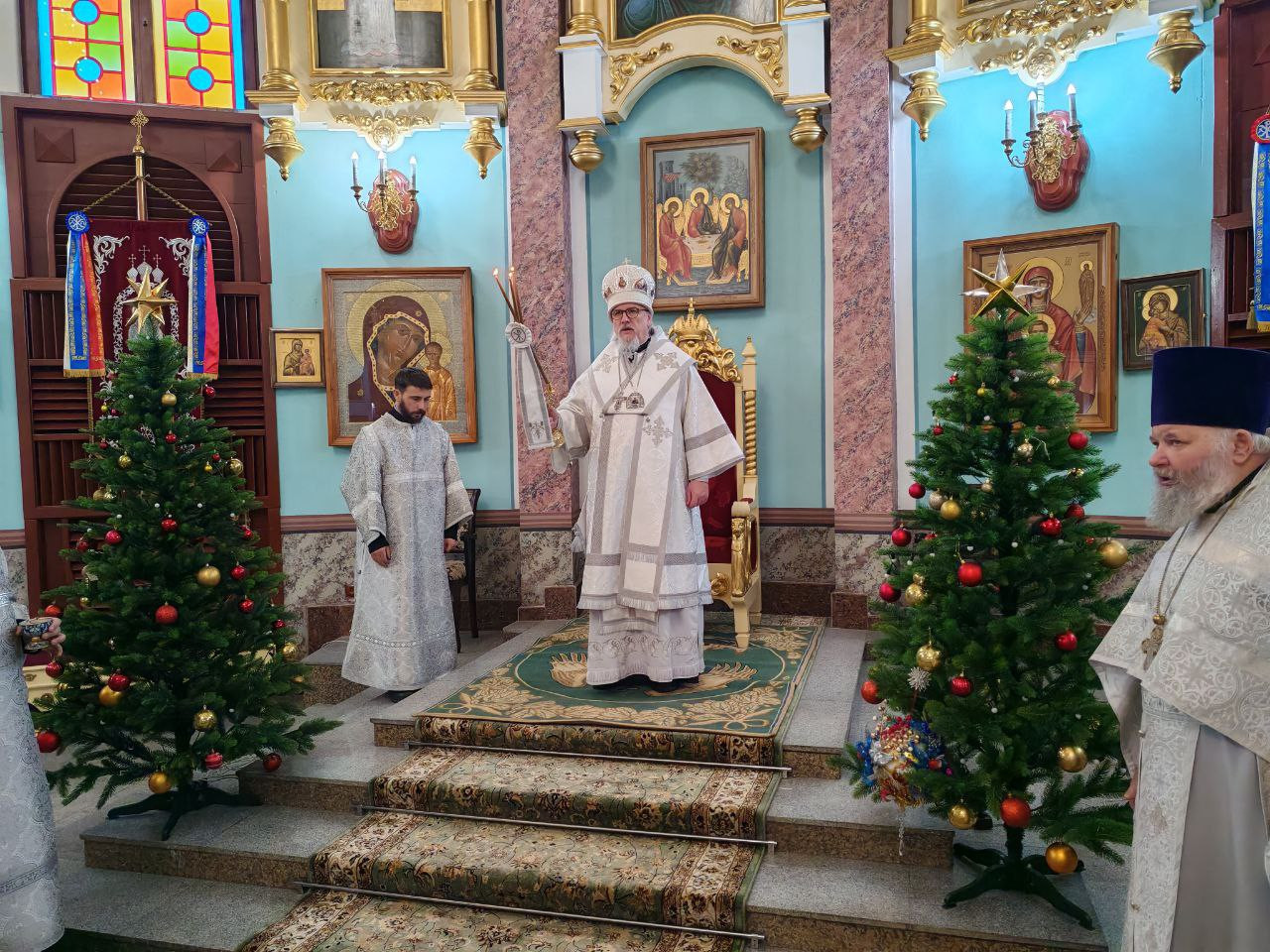 По окончании богослужения, были пропеты тропарь и кондак праздника Рождества Христова.