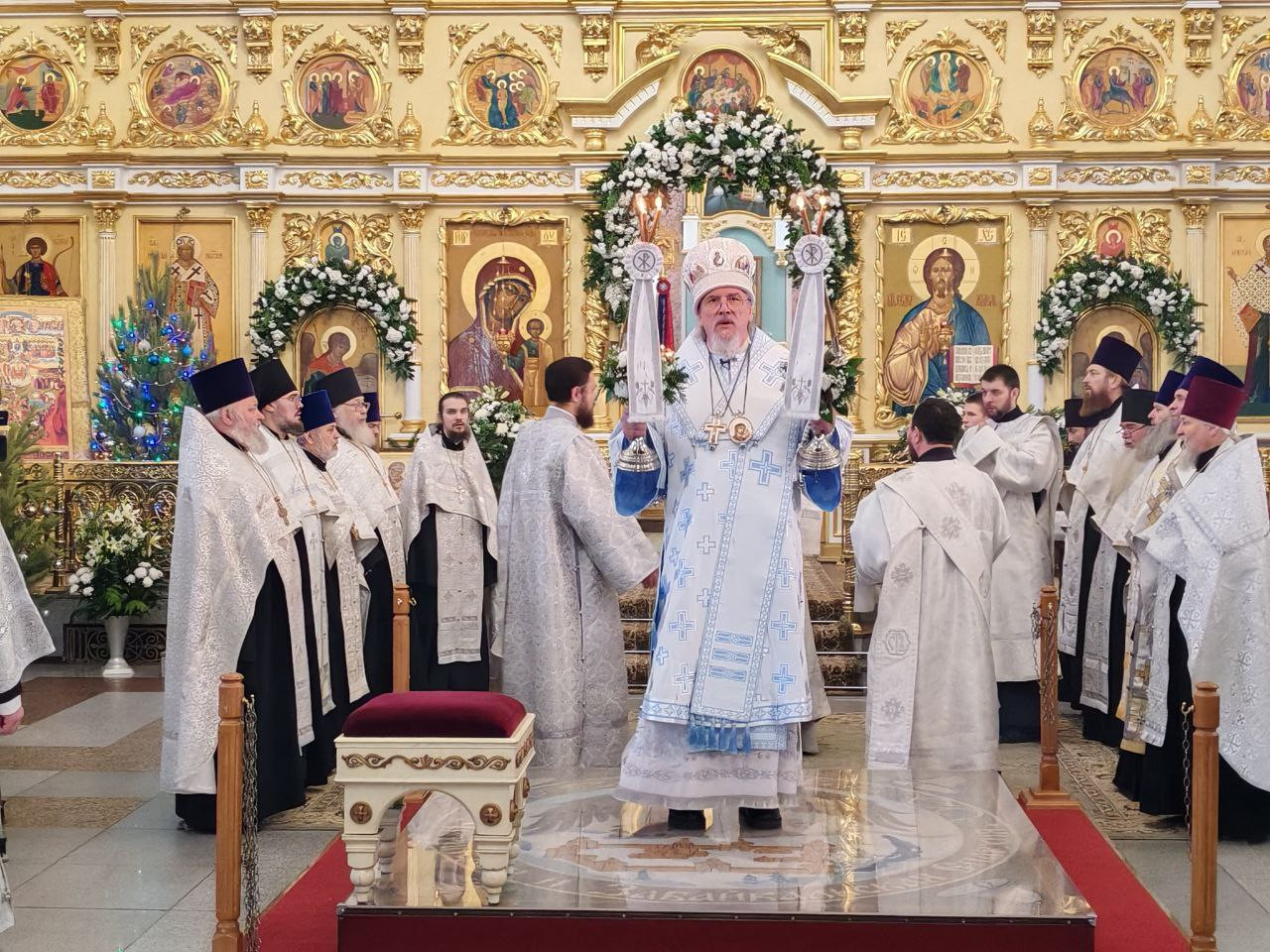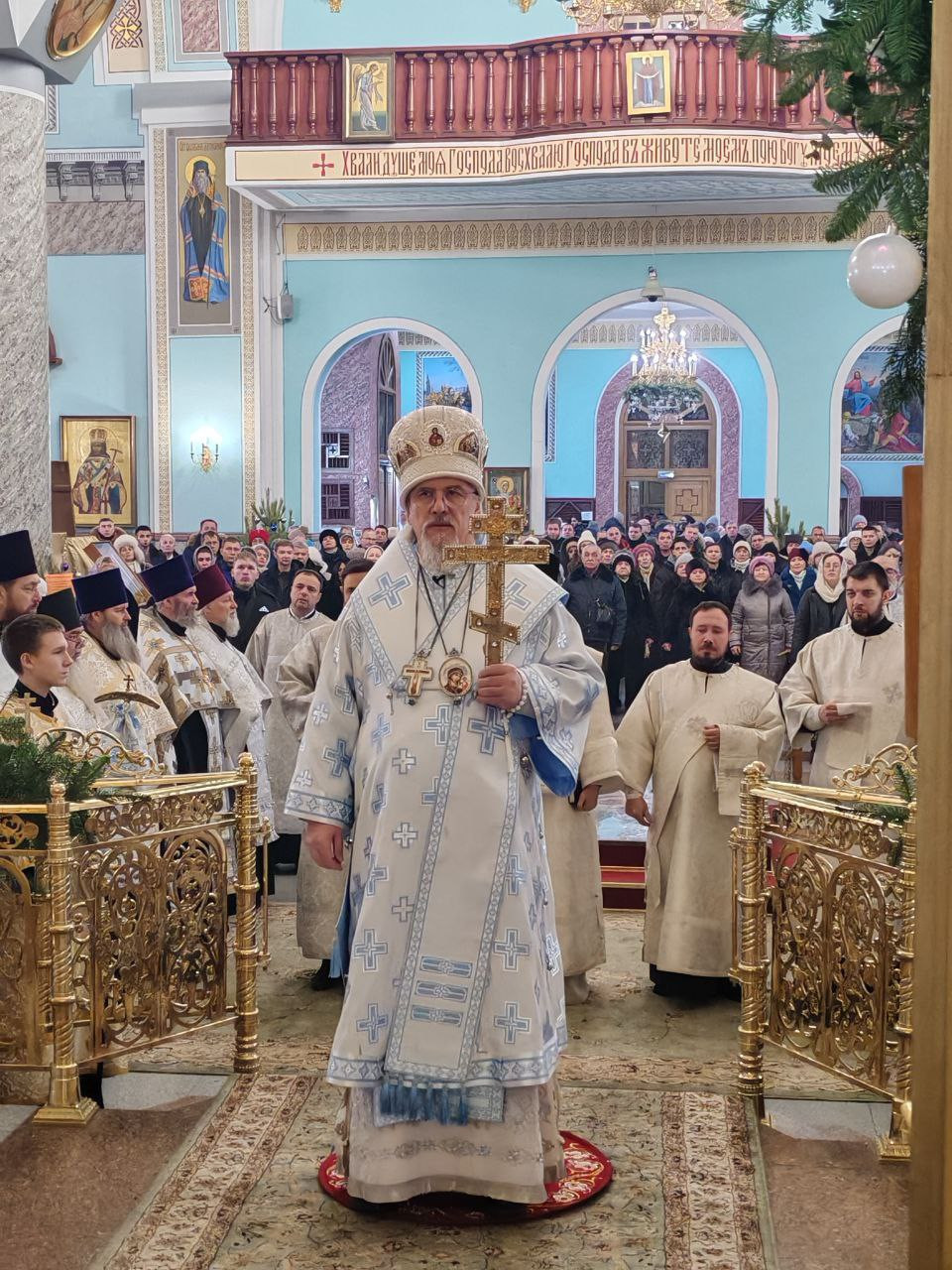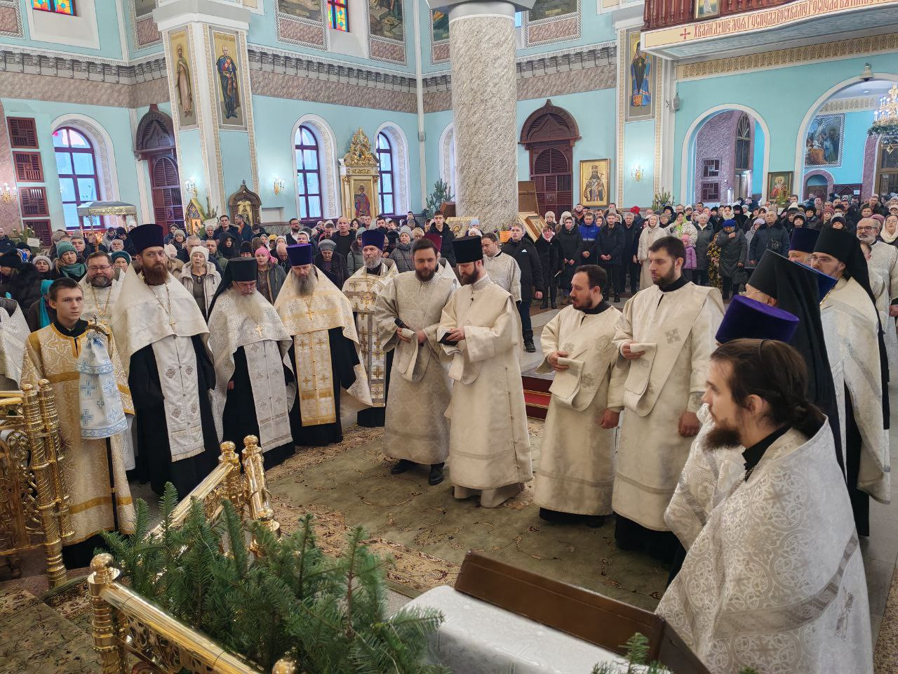 7 января 2026 года, попразднство Рождества Христова. Собор Пресвятой Богородицы. День памяти священномученика Евфимия, епископа Сардийского, первомученника Исаакия Бобракова Оптинского. Митрополит Читинский и Петровск-Забайкальский Димитрий совершил великую вечерню в кафедральном соборе Казанской иконы Божией Матери города Читы.