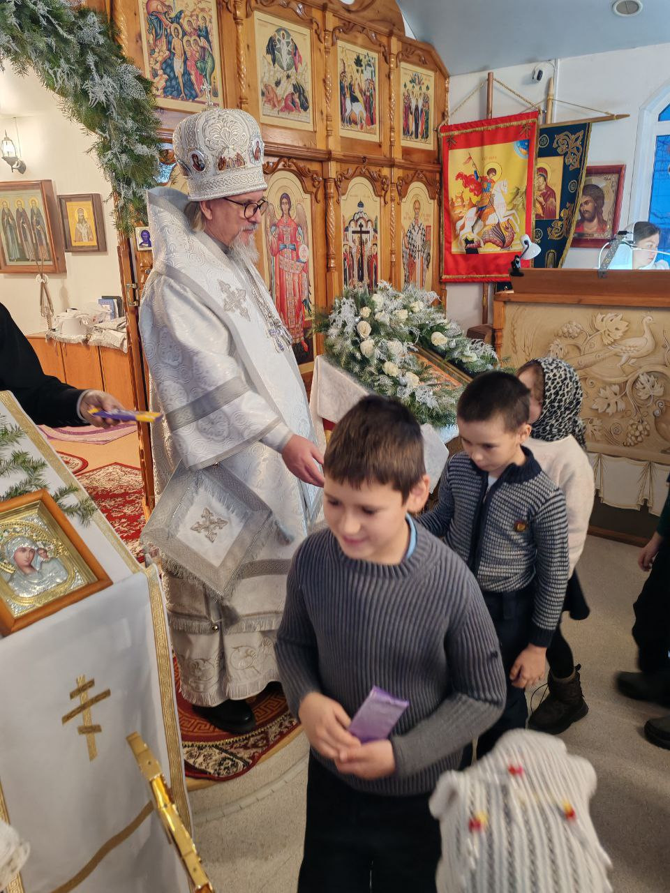Рождественское обращение с поздравлением Светлого Рождества Христова от митрополита Читинского и Петровск-Забайкальского Димитрия огласил иерей Антоний Горбунов.