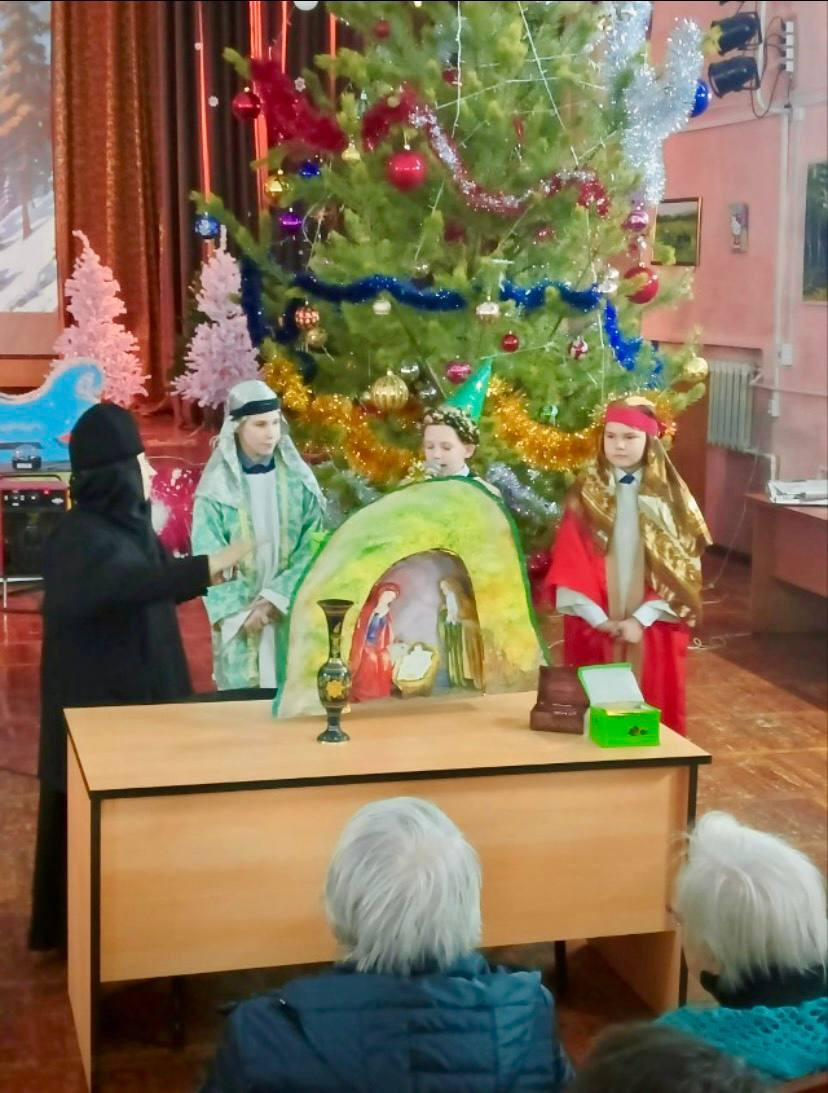 Сестры обители вместе с учащимися монастырской воскресной школы поздравили с Рождеством Христовым подопечных Атамановского дома-интерната для престарелых и инвалидов.