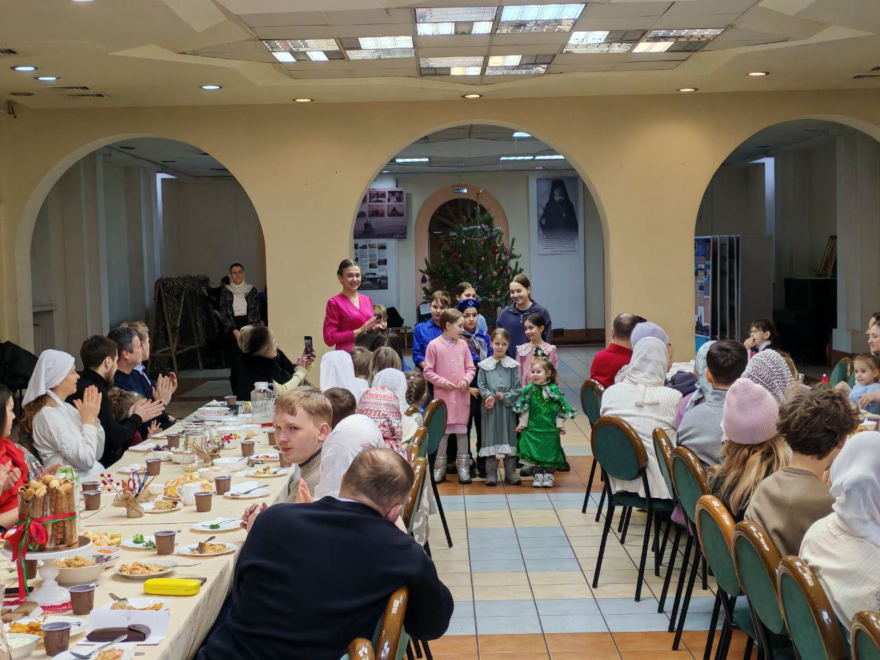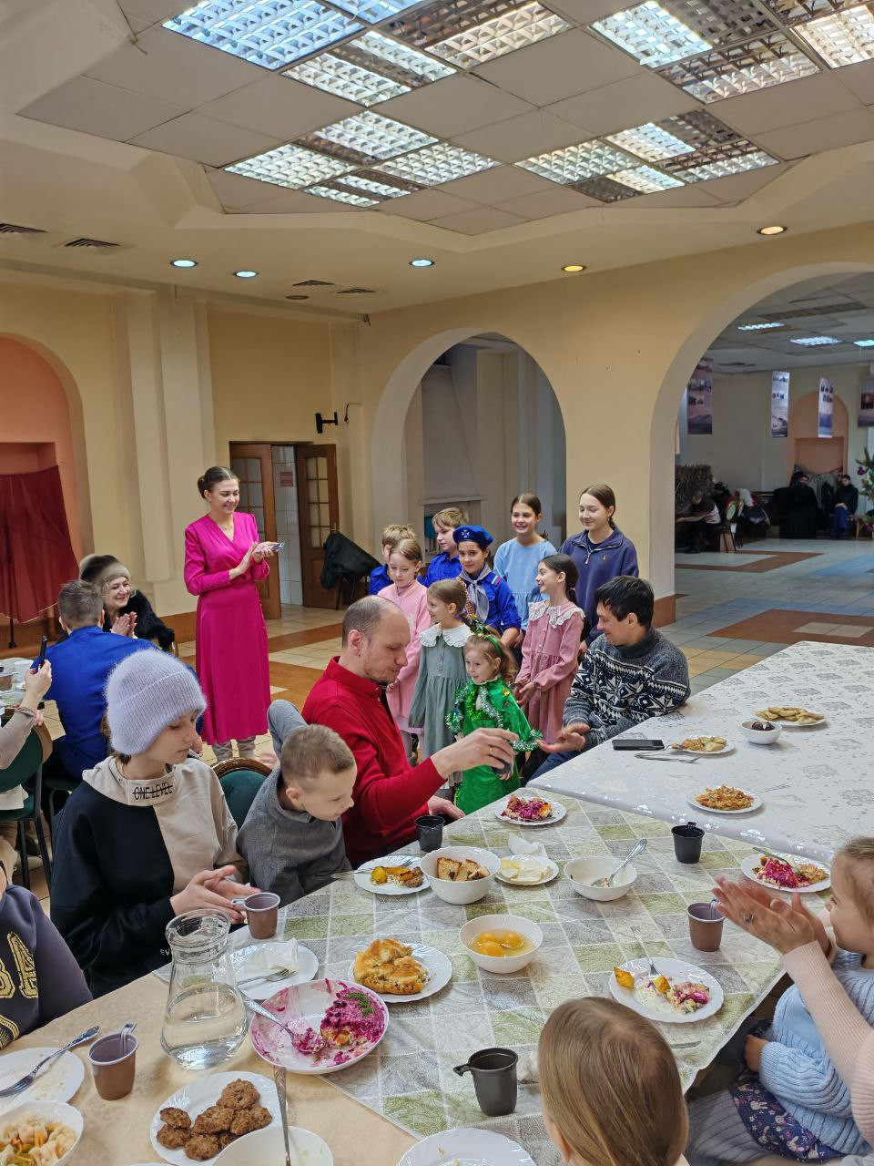 За столом царило необычайное воодушевление: звонкие голоса детского хора сменились стройным пением народных колядок, в которые включались и взрослые, и дети. Совместные игры и хороводы стерли границы между возрастами, наполнив зал искренним смехом и теплом. Это торжество доказало, что Рождество — это праздник, который лучше всего чувствуется в разделенной радости, когда каждый талант, будь то кулинарное мастерство или певческий дар, приносится в дар Богомладенцу.