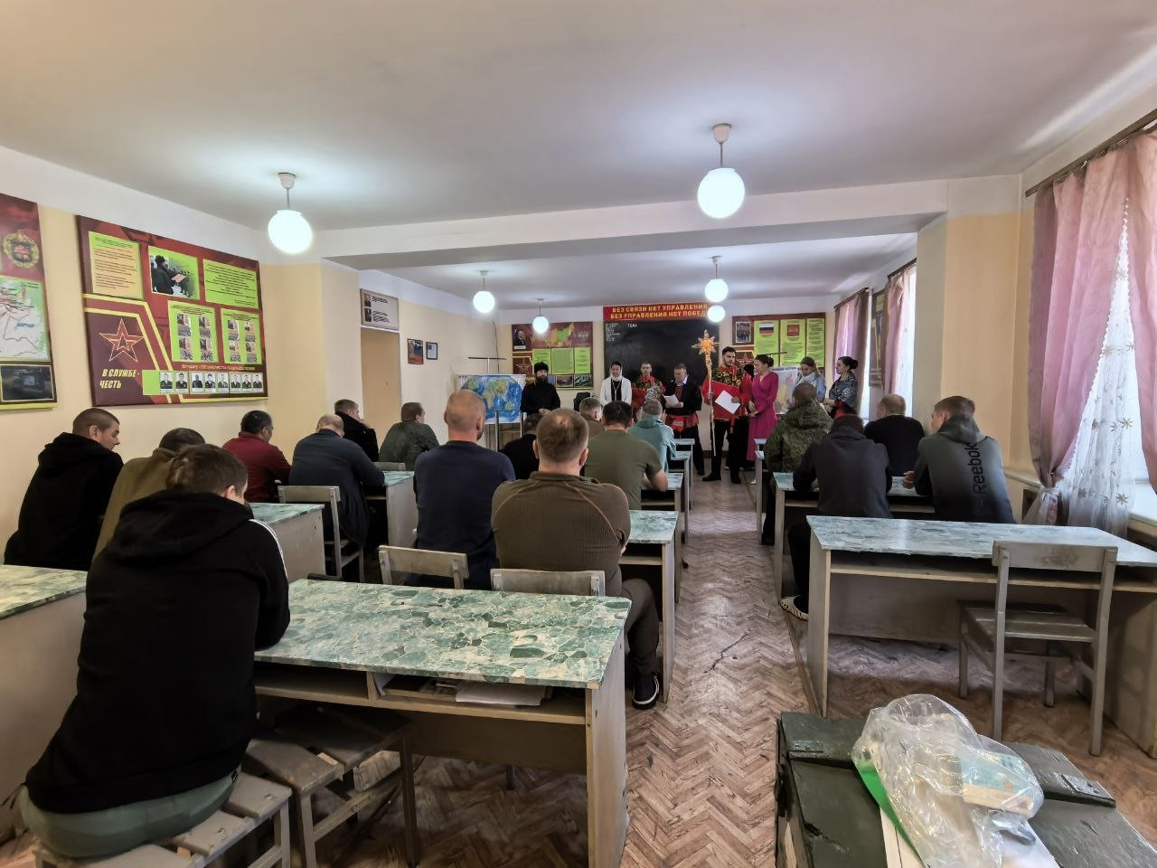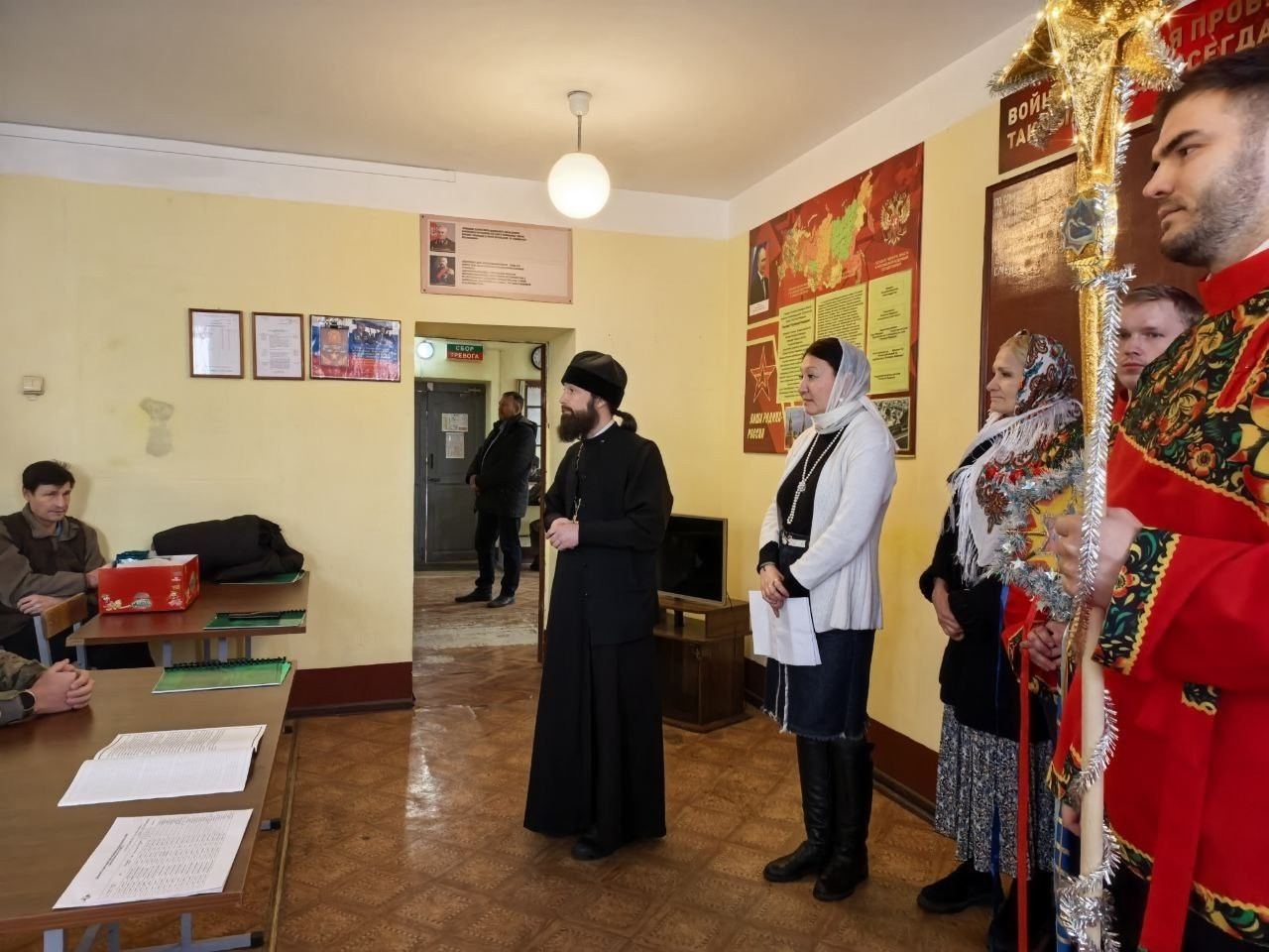 Иерей Валерий Шаферов обратился к военнослужащим с праздничным словом, разъяснив духовный смысл и значение Рождества Христова. После, прихожане собора исполнили для бойцов рождественские колядки. Всем желающим раздали тексты песнопений, что позволило военнослужащим присоединиться к общему хору и спеть колядки вместе с гостями.