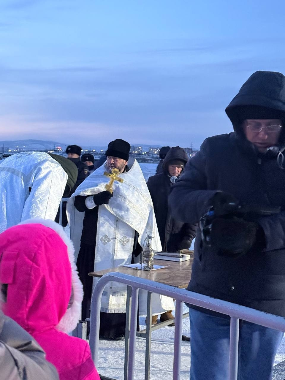 По благословению митрополита Димитрия, Главы Забайкальской митрополии, в Крещенский сочельник настоятель Крестовоздвиженского храма иерей Алексей Янковский совершил чин Великого освящения воды и освятил купели для желающих окунуться в иордань на озере Кенон.
