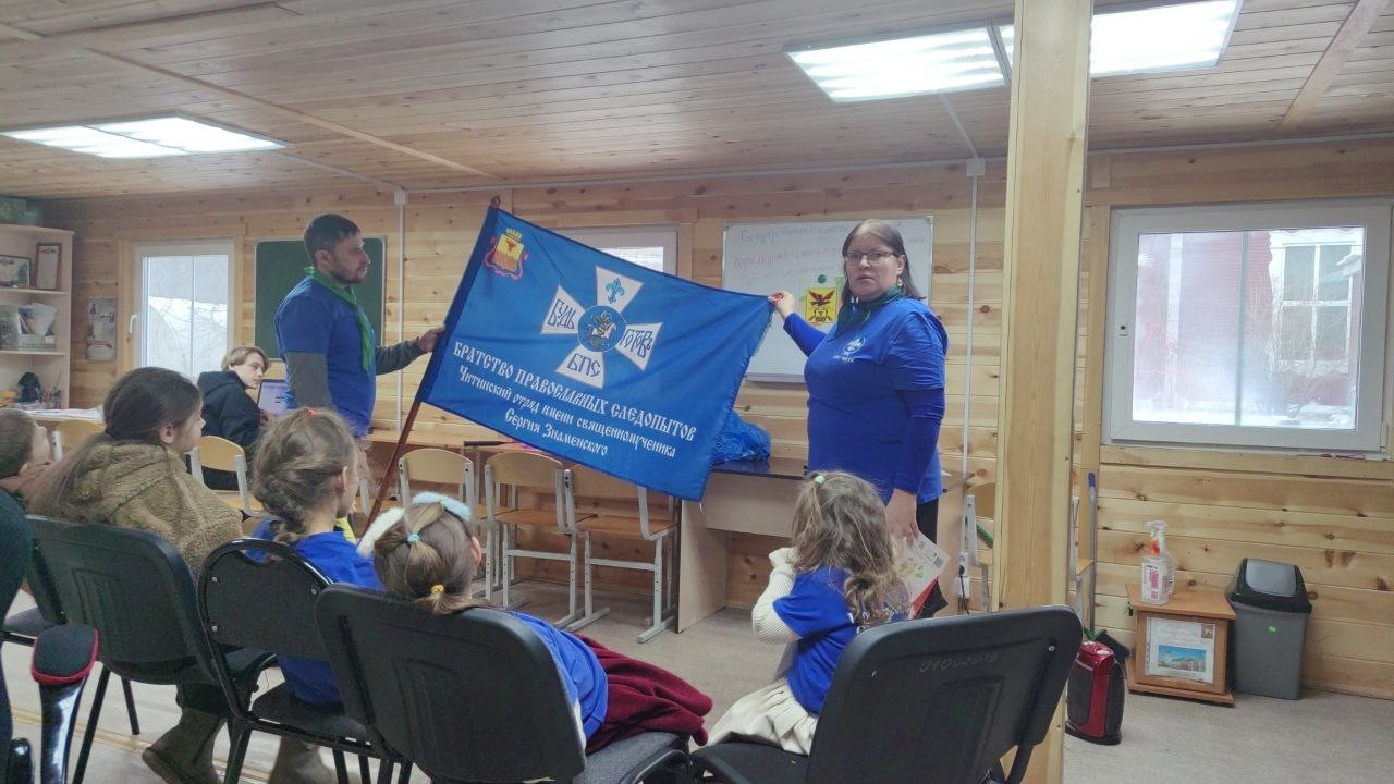 Вторая часть занятий была не менее насыщенной. С Галиной Сергеевной, погружаясь в курс краеведения, юные следопыты изучили государственные символы родного Забайкальского края. Интересный факт: герб города Читы занимает почетное место и на флаге организации БПС, что подчеркивает глубокую связь отряда с малой родиной.