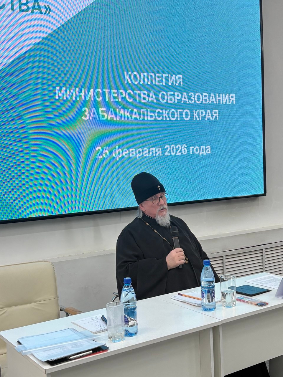 По приглашению Министерства образования Забайкальского края в его работе приняли участие митрополит Читинский и Перовск- Забайкальский Димитрий и протоиерей Павел Матвеев, председатель Отдела религиозного образования и катехизации Читинской епархии. В начале работы круглого стола его участников ознакомили с результатами мониторинга по выбору модулей в предметной области ОРКСЭ. Был отмечен рост выбора по Основам Православной культуры, который составил 26,7 %. Затем к участникам круглого стола обратился владыка Димитрий. Он отметил важность освоения основ православной культуры в процессе формирования мировоззрений учащихся. Он подчеркнул, что в этом деле необходимо обращать внимание не только на отдельный предмет, но и на ход всей воспитательной работы в школе и на ту внешнюю среду, в которой пребывают учащиеся в школе и в том населённом пункте, где они живут. Владыка привлёк особое внимание участников мероприятия к трагическому опыту Украины, где ещё задолго до сегодняшних событий проводилась антиправославная кампания, начавшаяся со спиливания поклонных крестов. Также он отметил важность чистоты речи, в которой не должно быть места сквернословию. Также речь шла о том, что привитие учащимся православной культуры должно проходить через все предметы школьной программы. В выступлении протоиерея Павла Матвеева. Было обращено внимание на опасность проникновения в воспитательный процесс идей неоязычества, на вопросы подготовки учителей по ОПК, вопрос взаимодействия школы со священнослужителями. В ходке круглого стола были также обсуждены вопросы обеспечения учащихся учебниками, вопросы форм взаимодействия учебных заведений и Церкви и другие вопросы. В завершение встречи владыка Димитрий поблагодарил участников за участие в работе круглого стола и пожелал успехов в их профессиональной деятельности.