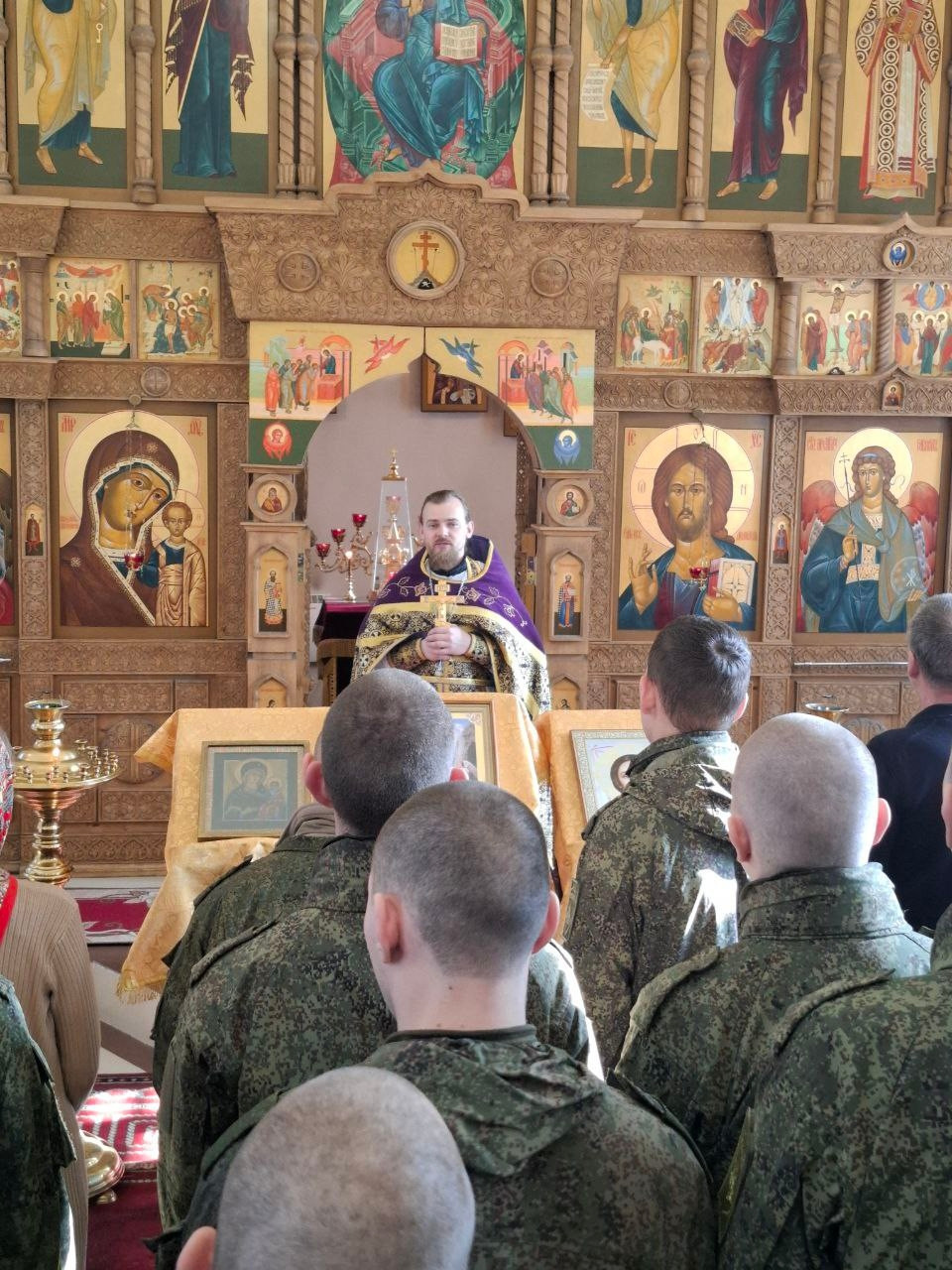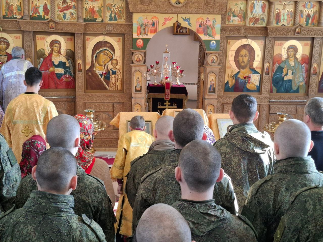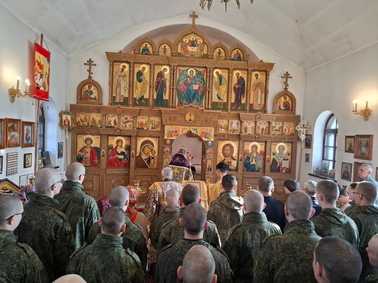 Здесь икона становится для каждого воина живым знаменем веры. Молясь перед образом Спасителя, Пресвятой Богородицы и святых воинов, защитники Отечества черпают силы для своего нелегкого служения.
