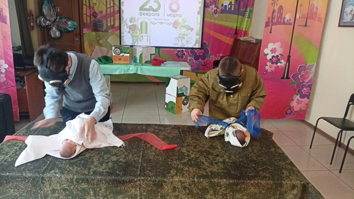 На второй станции школьников ждала полоса препятствий — испытание на сноровку, скорость реакции и командную взаимовыручку. Здесь ребята пеленали пупсов, надевали противогазы и собирали гигантские пазлы. Один момент требовал точности, другой — смелости и быстроты, третий — умения договориться и действовать сообща. Этот этап получился самым динамичным: смех, азарт и искреннее стремление справиться лучше всех были слышны, кажется, на всю библиотеку.