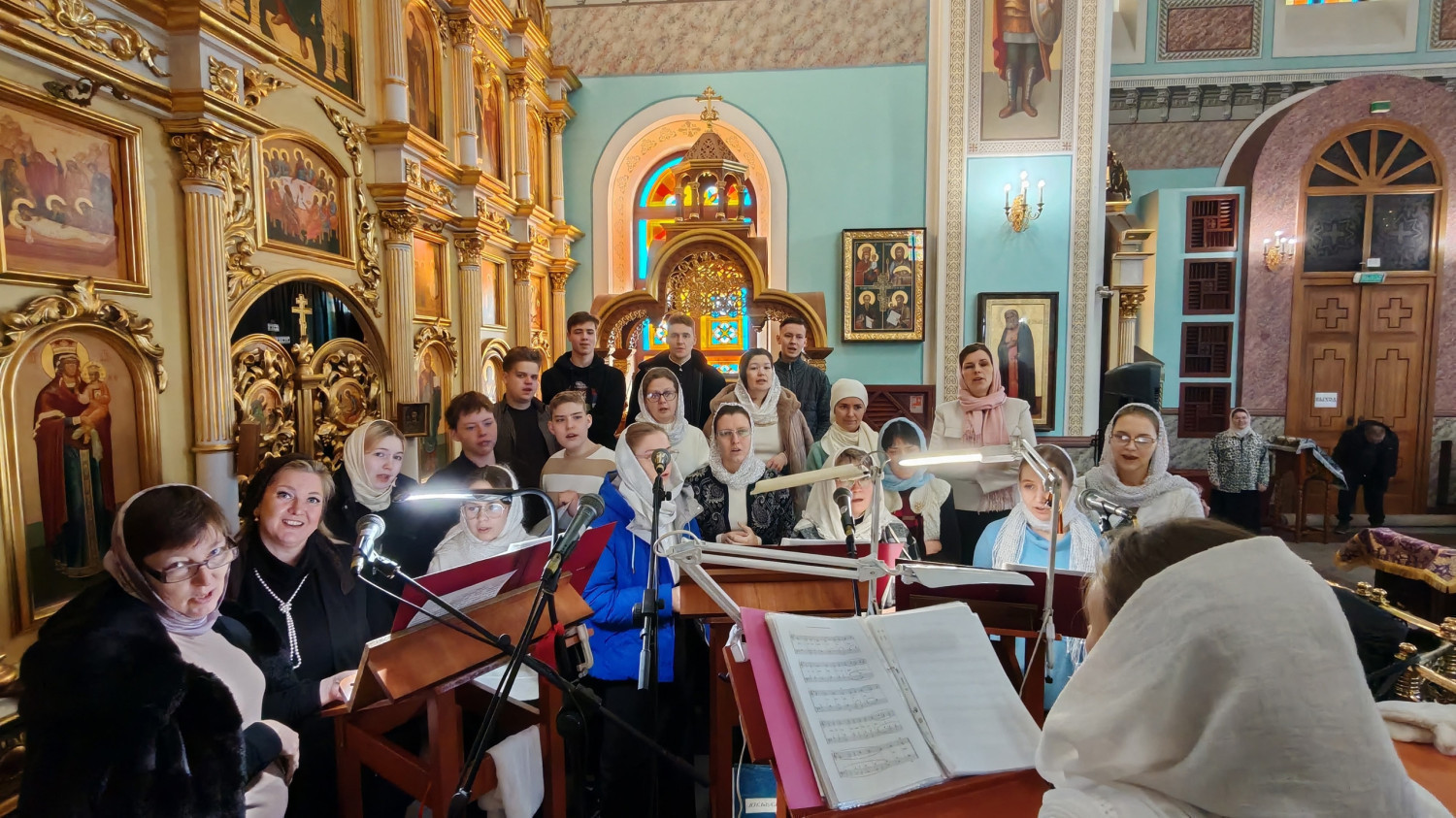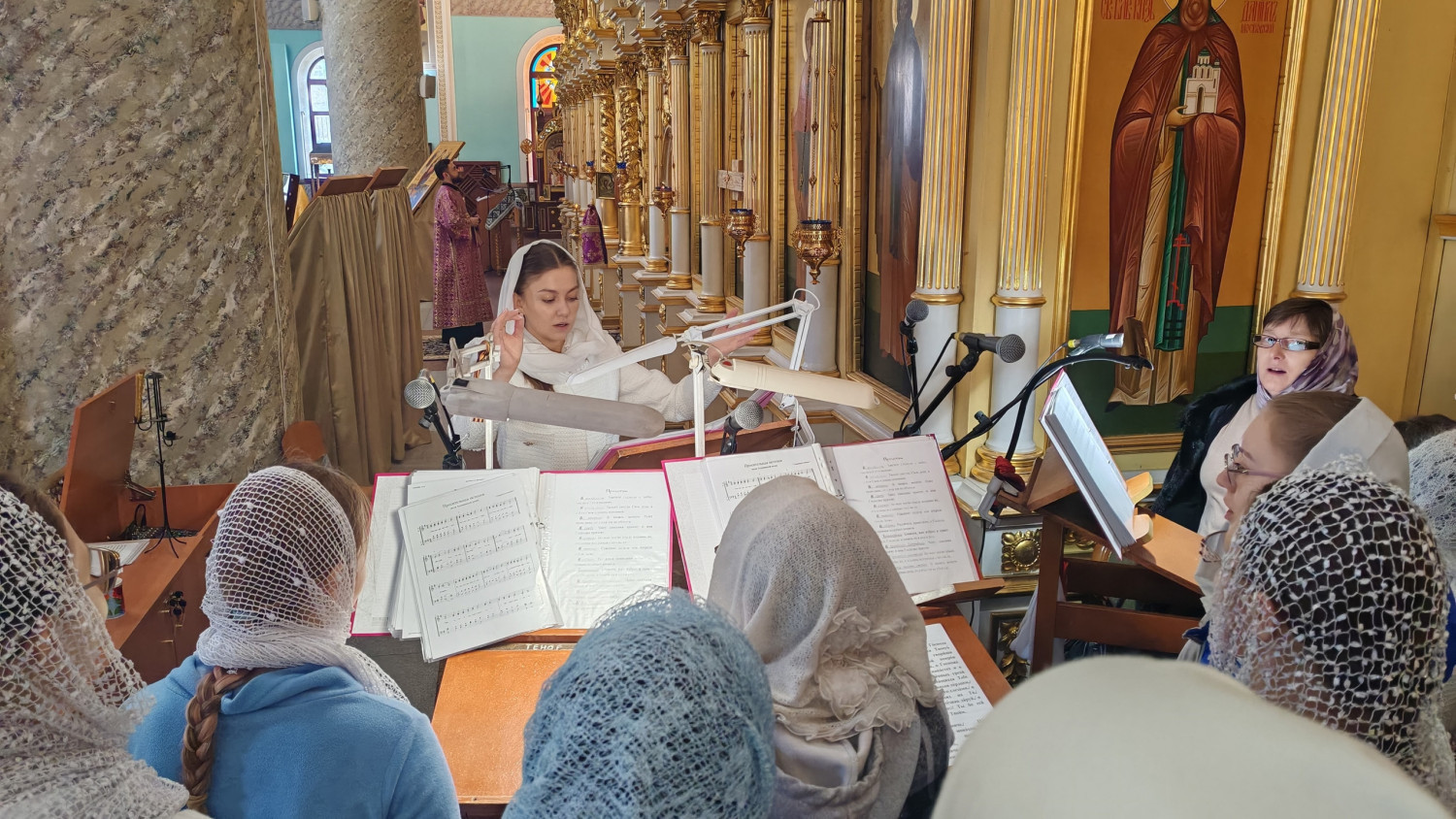 Богослужебные песнопения исполнил архиерейский молодёжный хор Казанского кафедрального собора под руководством регента Татьяны Медведевой.
