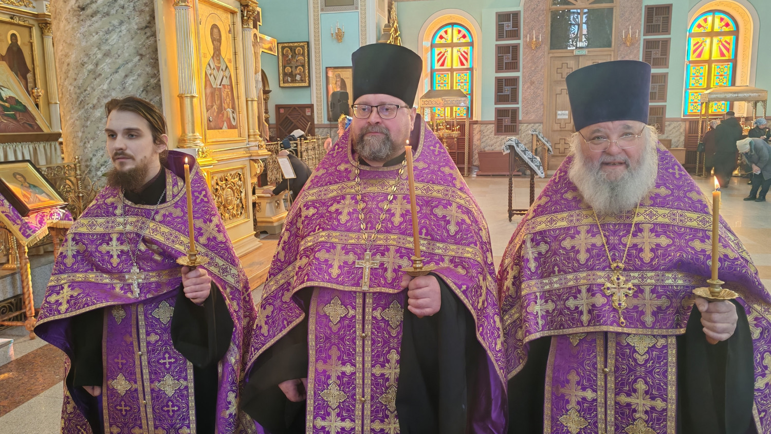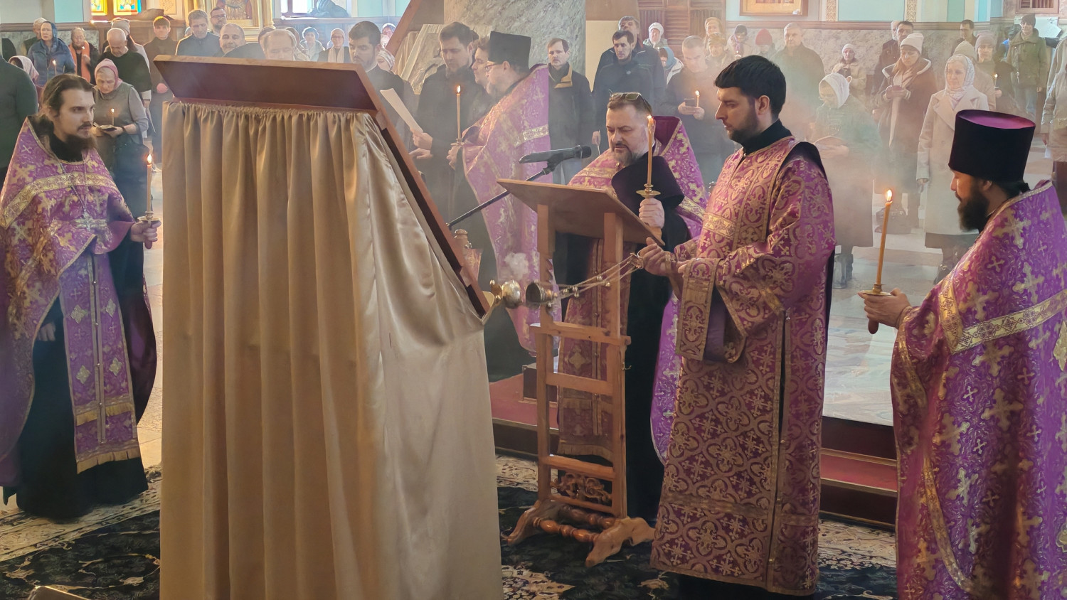 Вечером, 27 марта 2026 года, 5-й седмицы. Суббота Ака́фиста. Похвала́ Пресвятой Богородицы. Мч. Ага́пия и иже с ним. Митрополит Читинский и Петровск-Забайкальский Димитрий возглавил вечернее богослужение в кафедральном соборе Казанской иконы Божией Матери города Читы.