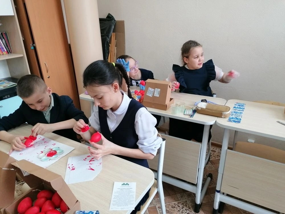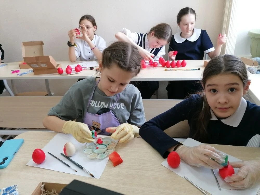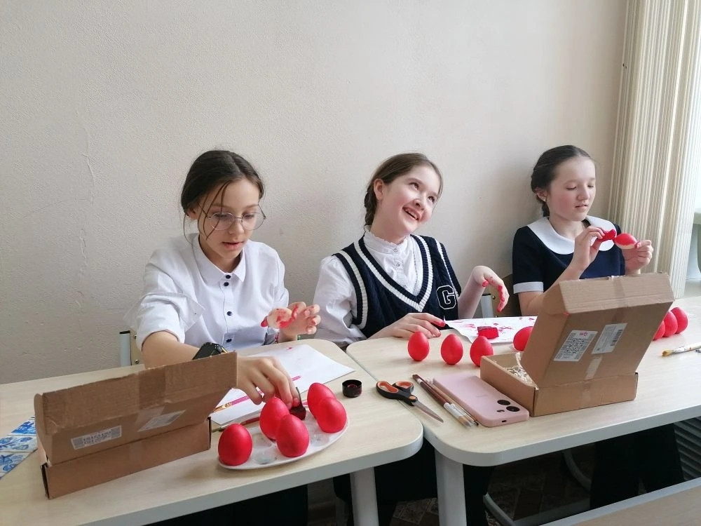 В Забайкальской православной гимназии началась подготовка к Пасхе: ученики расписывают деревянные яйца.
