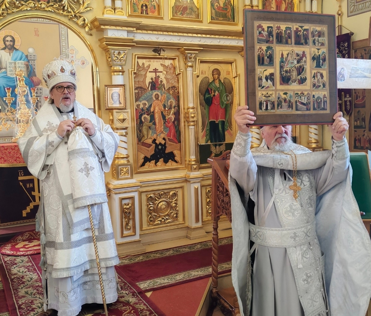 По окончании богослужения, Глава Забайкальской митрополии обратился ко всем молящимся с архипастырским словом назидания и подарил приходу на молитвенную память икону Воскресения Христова.